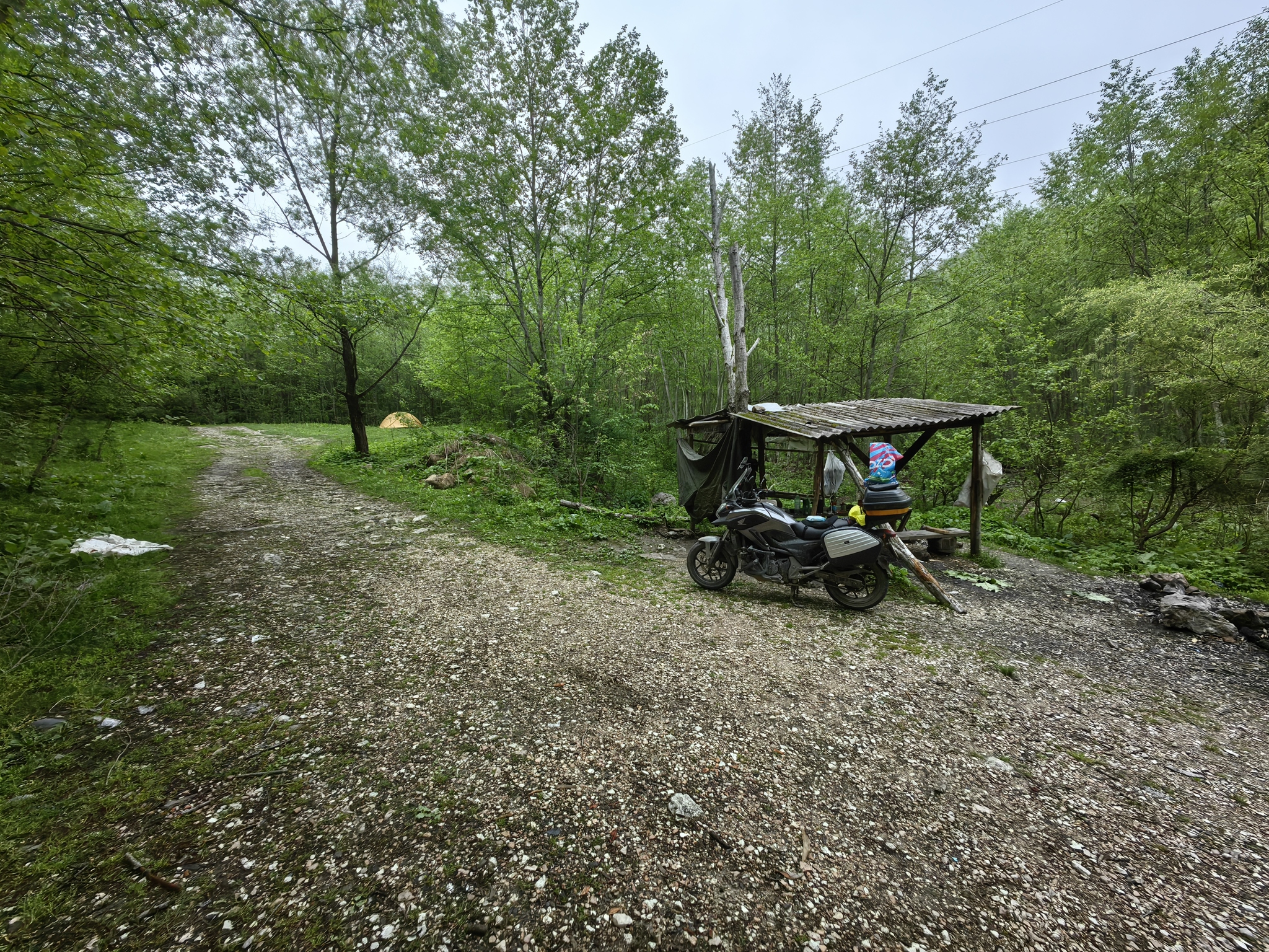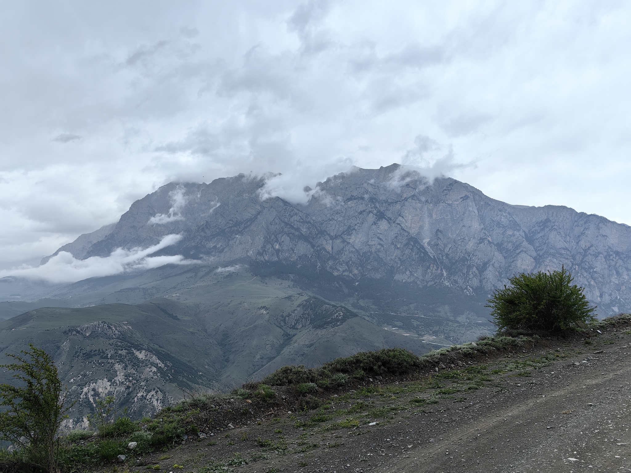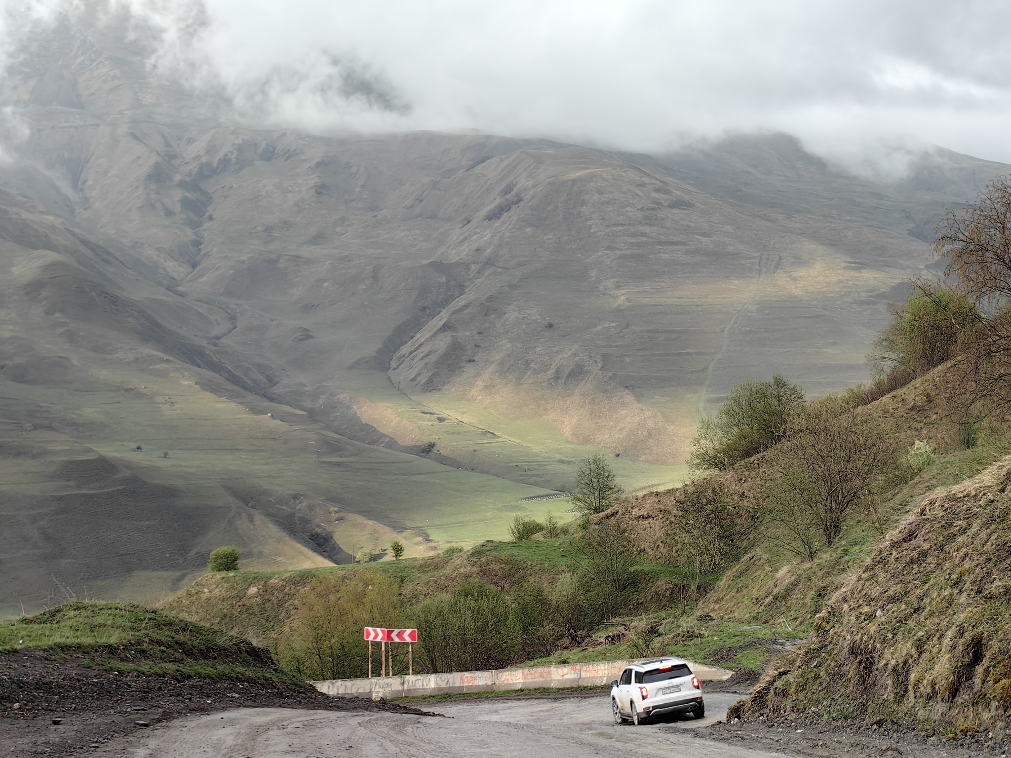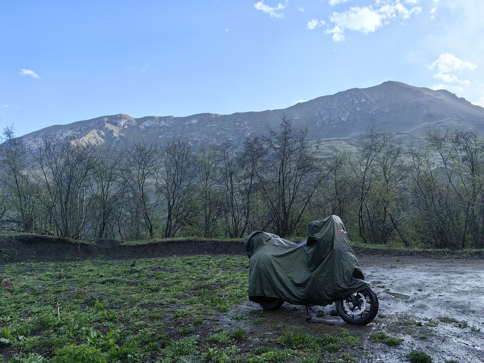 На этой дороге практически негде остановиться с палаткой, а время уже шло к закату. Единственное приличное место здесь (42.836285, 44.349658)