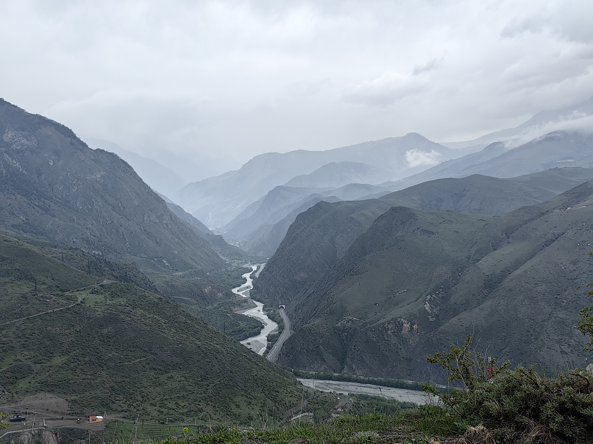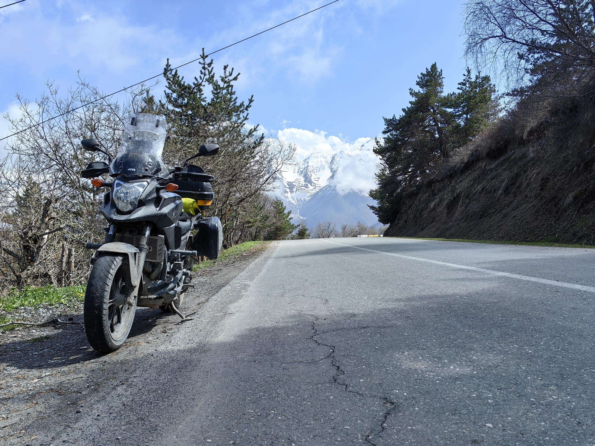 За посёлком Гули начинается настоящий рай для мотоциклиста: идеальный серпантин, виды на горы со снежными шапками и отвесные скалы.