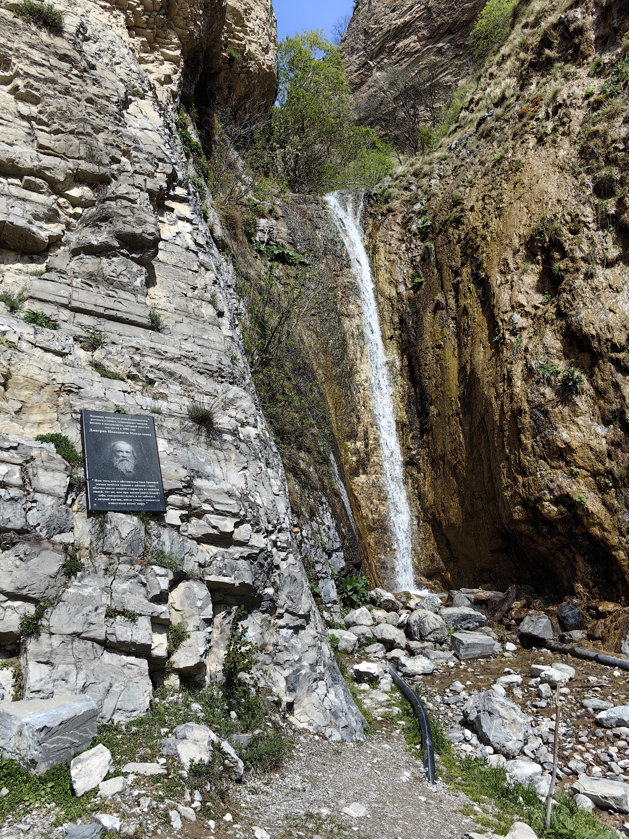 Дальше вопрос ваших предпочтений. По сути Ингушетия - это одна сплошная сквозная дорогая через всю республику. Она сама по себе очень красивая с отличным асфальтом и серпантинами. Но для полного погружения уходим в горы на каменистую грунтовку и покоряем очередные тропки. Ближайшее интересное место - Фуртоугский водопад (42.846386, 44.666139). Там и запасы воды пополнить можно, и рядом беседки с лавками и столами есть и даже целый музей.