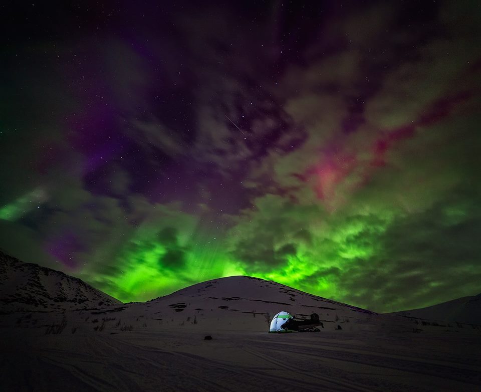 Многие путешественники "гоняются" за полярным сиянием, при котором происходит следующее - на небе появляются зелёные полосы с оттенками розового и фиолетового. Чтобы "поймать" это небесное свечение, надо отправляться на Север и готовиться к ночному холоду.