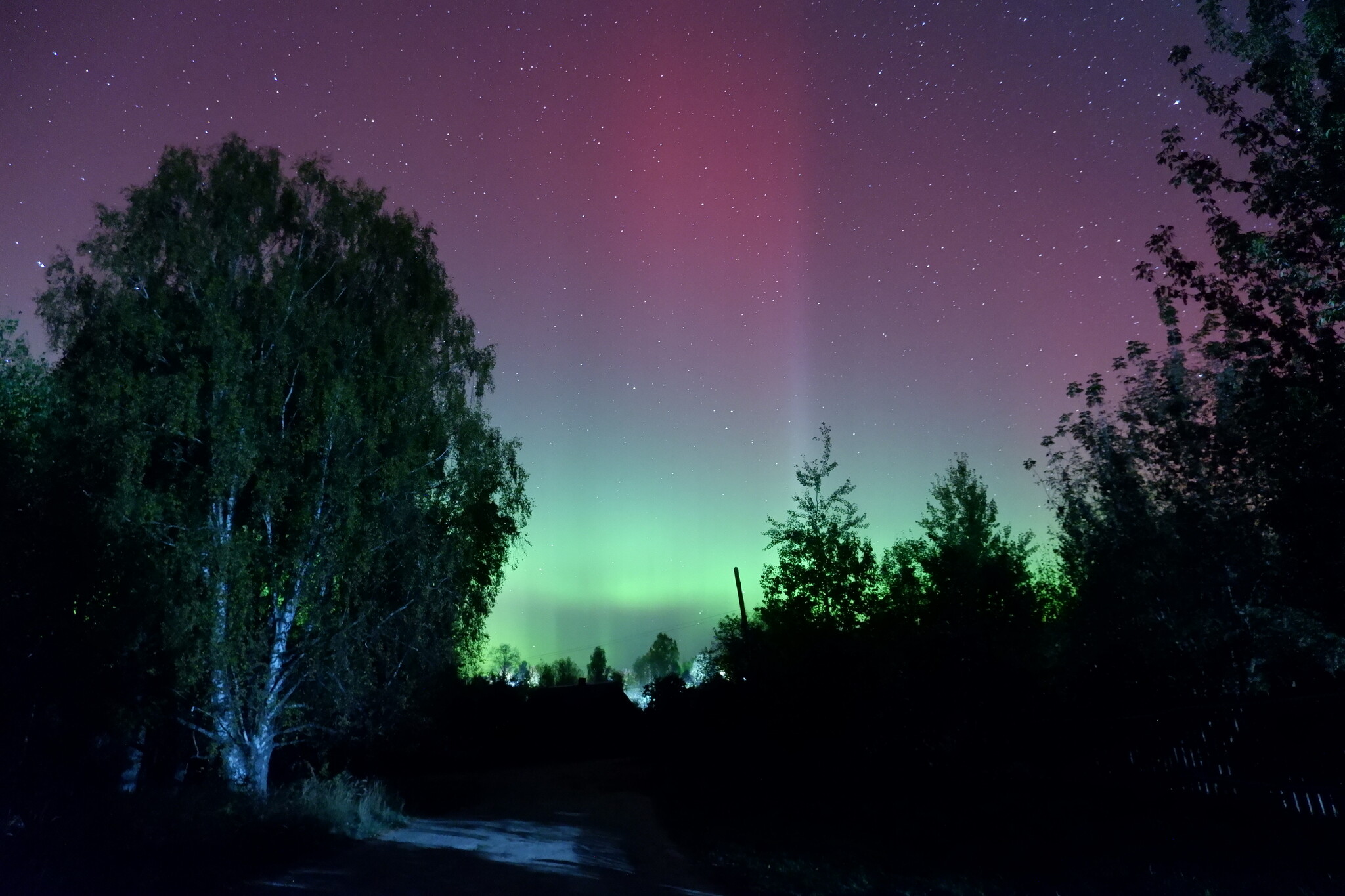 А это на окраине нашего села. Его граница почти полностью совпадает с границей сияния. Словно они сговорились так поделить территорию😹😹