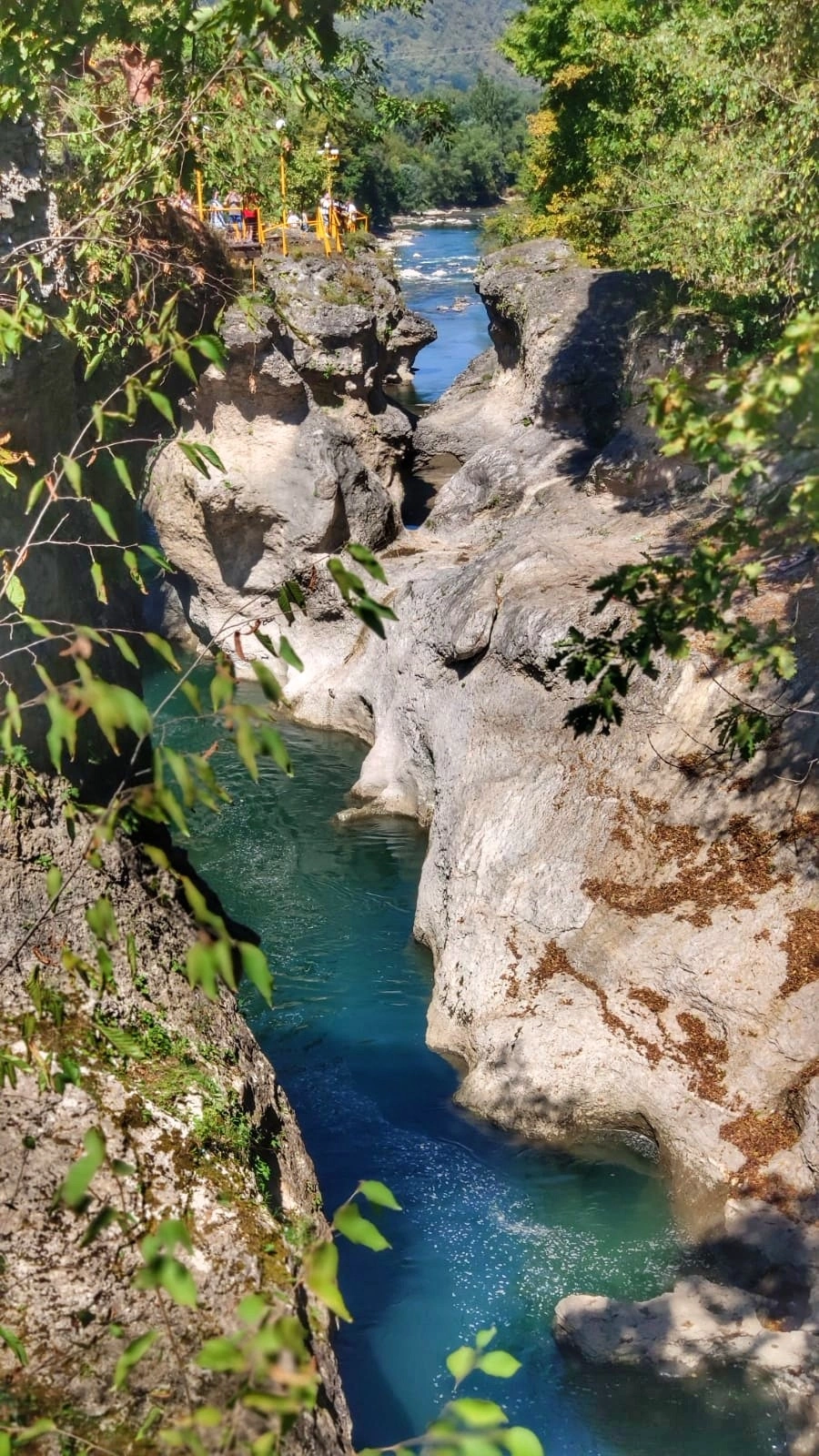 В интернете есть варианты обхода кассы и бесплатного прохода в верхнюю и нижнюю часть теснины. Мы шли через кассу, и, в принципе, ни о чем не пожалели, т.к. с пешеходного моста (проход по которому, в т.ч., входит в стоимость билета) открывается красивый вид на реку, и сама зона хорошо оборудована.