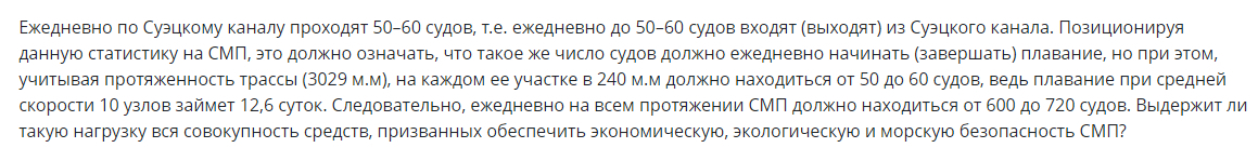 // А это - почти 20% от объема перевозок через Суэцкий канал. Впрочем, транзитное использование СМП, на мой взгляд, не так чтобы выгодно для России.