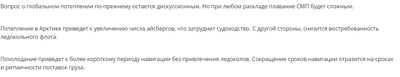 3. «Росатом» уже обсуждает переориентацию части добываемой в Арктике нефти с западных маршрутов на Севморпуть, предлагая использовать обычные танкеры с гарантированной безопасностью и ледоколы в летне-осеннюю навигацию. Также «Росатом» предлагает направить на Севморпуть экспорт российской нефти, осуществлявшийся ранее из портов Балтики на Запад.