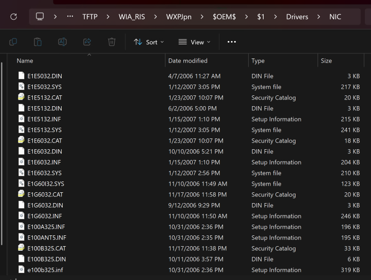 Кладём это всё в корень нашего TFTP-сервера, а рядом кладём образ самого Windows PE, собранный из того же Server 2003 SP1.