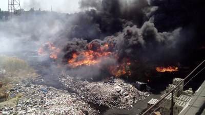 Кто-то построил заводик полимеров возле дороги. Кто-то хранил на заводике шины. Кто-то поджег заводик, результат: