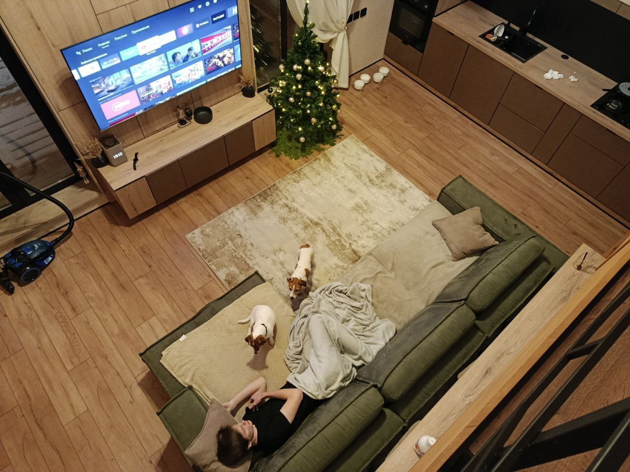 В гостиной занял свое место диван и елочка. Но так было не всегда)
