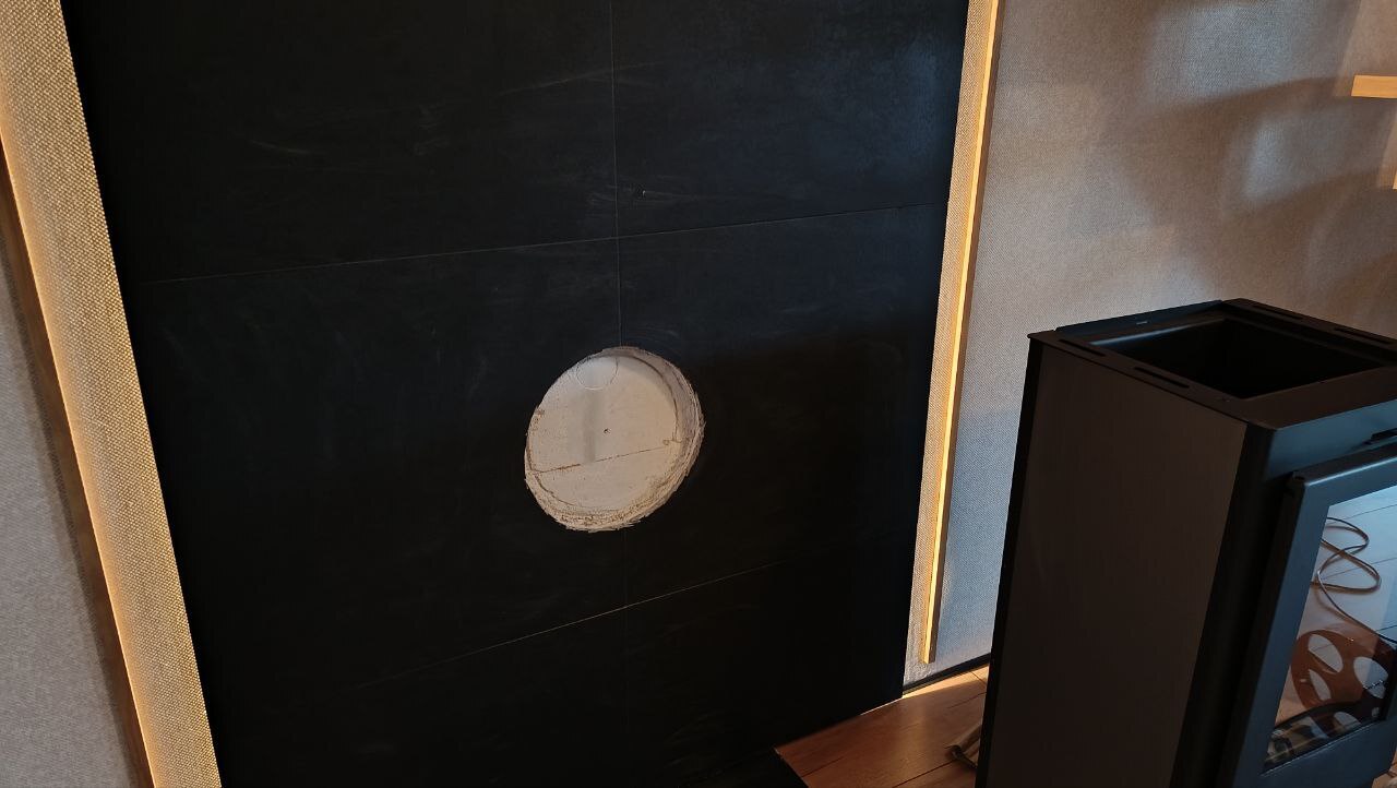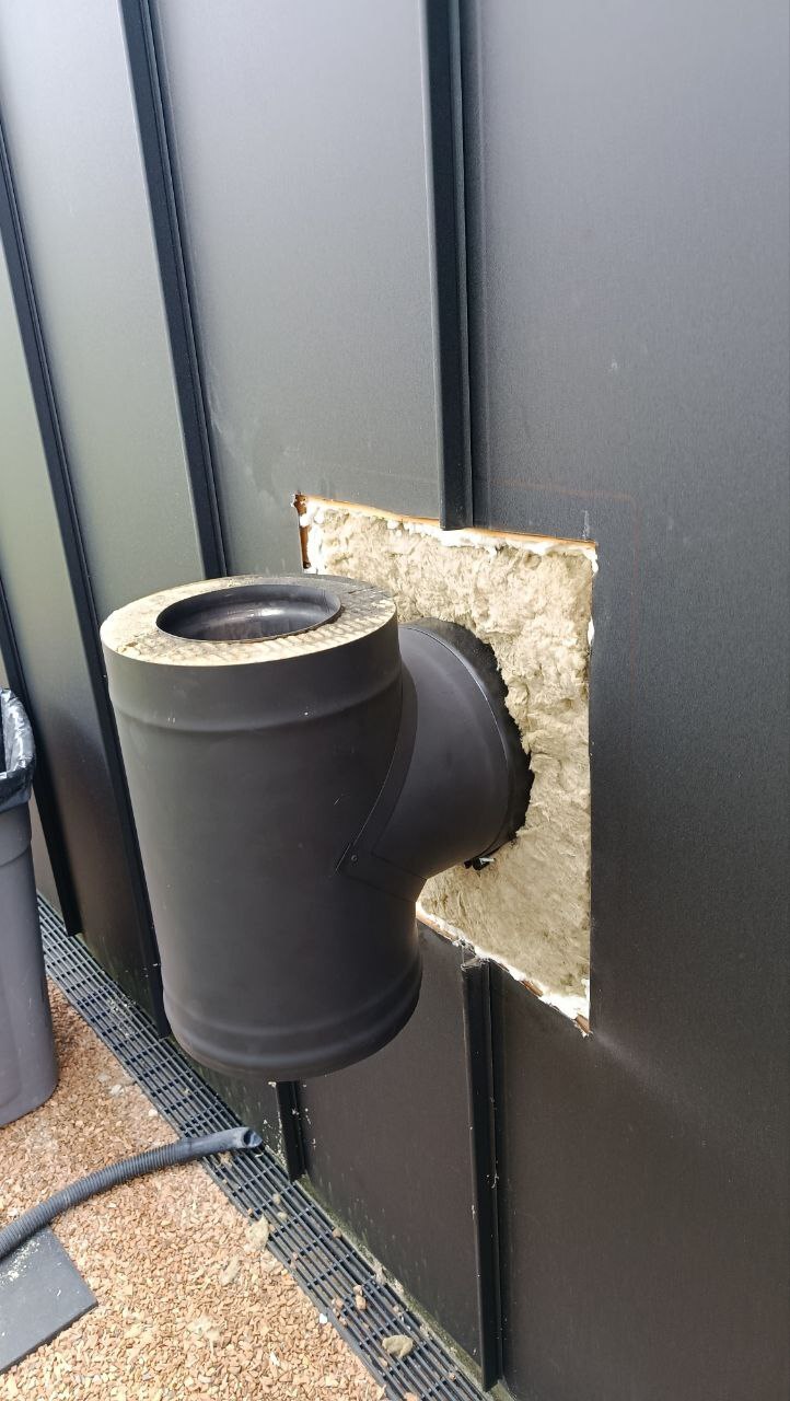 2. Печь камин и дымоход. Все отлично работает, тяга отличная. Все безопасно, в этом плане проход через газосиликатные блоки все волнения убирает. При -15 топим вечером, пару чурок и температура в доме поднимается на 2 градуса, печь держит 90 градусов на поверхности и остывает до 30 примерно за 4-5 часов. Последняя доработка была в установке шибера внутри. Так как в морозы обнаружилось промерзание печи, так как у меня активно работают вытяжки и рекуператор. После установки шибера все проблемы ушли, теперь кайф.
