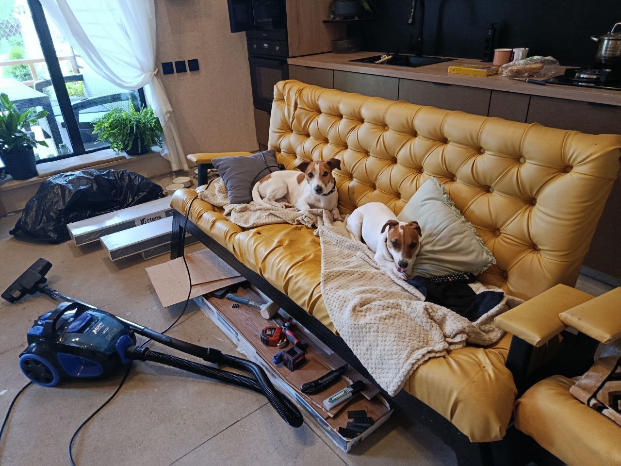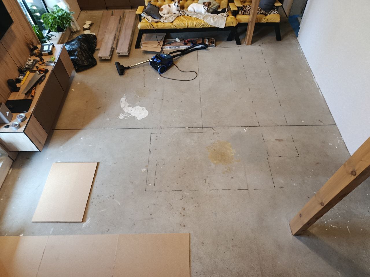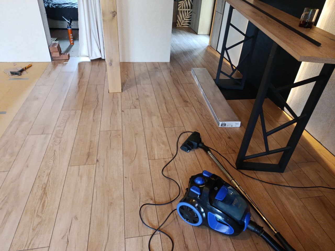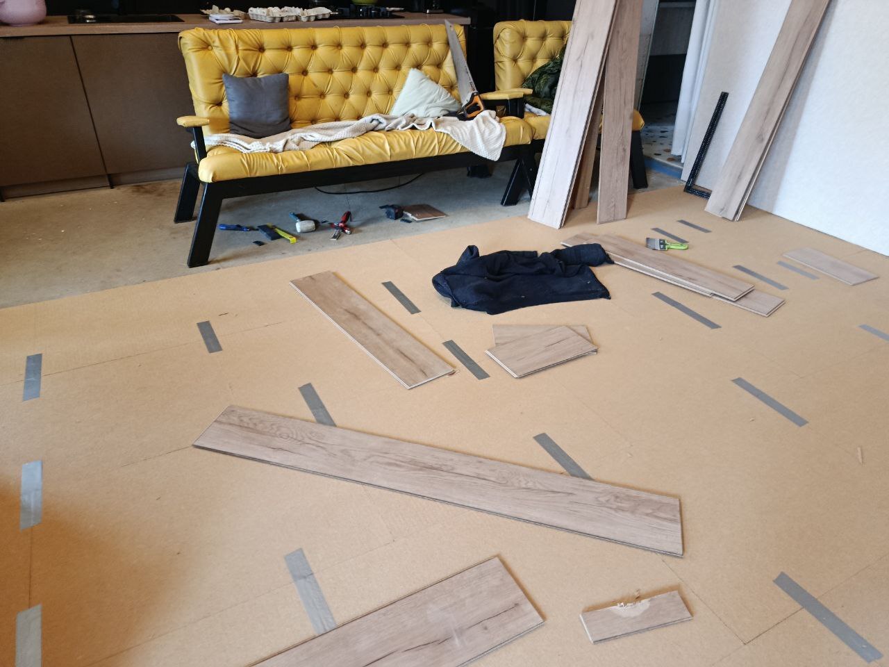 Сезон 2025. Часть 8. Ламинат на теплый пол, диван, камин