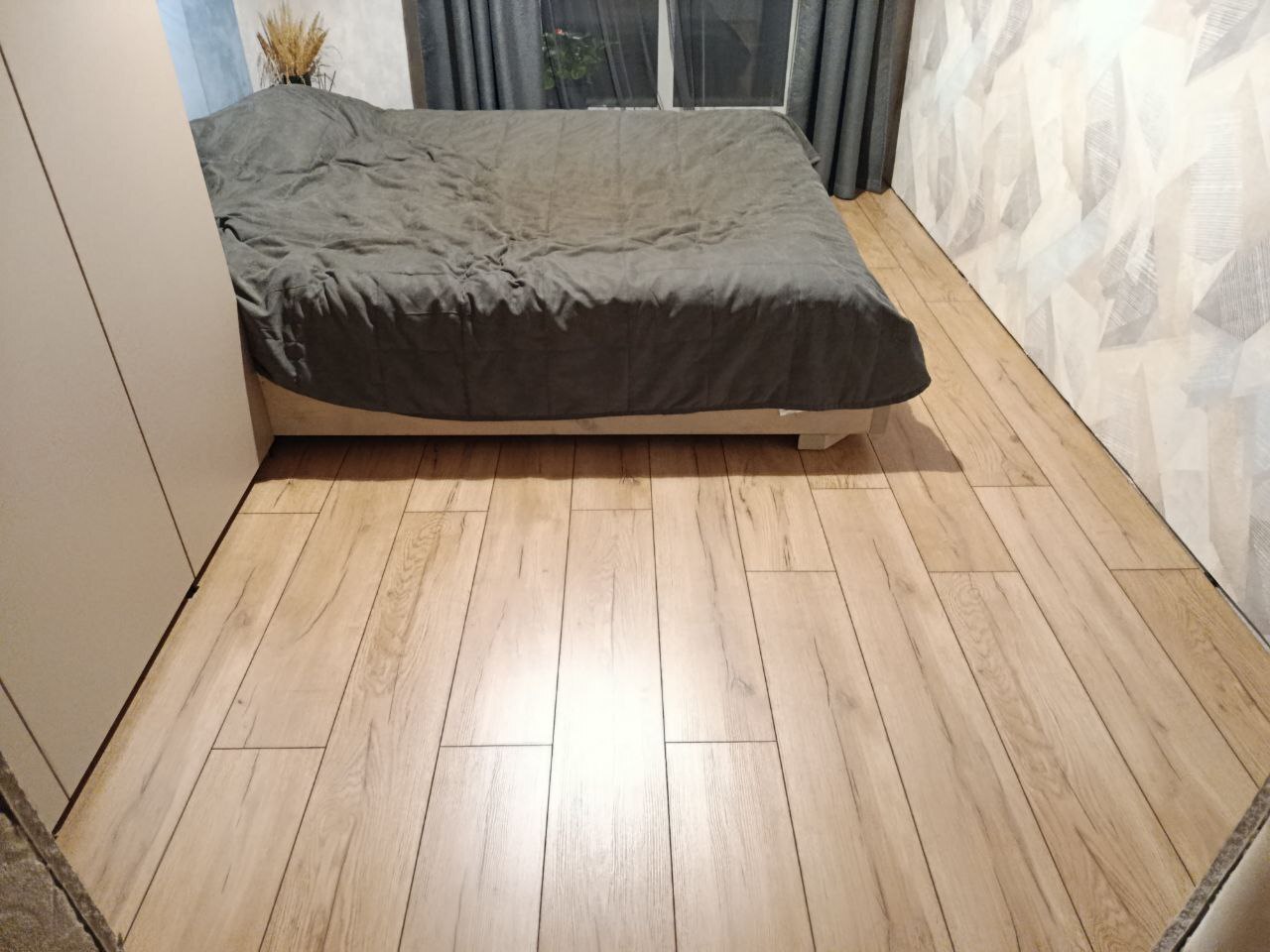 В комнате тоже уложил ламинат, все по той же схеме.
