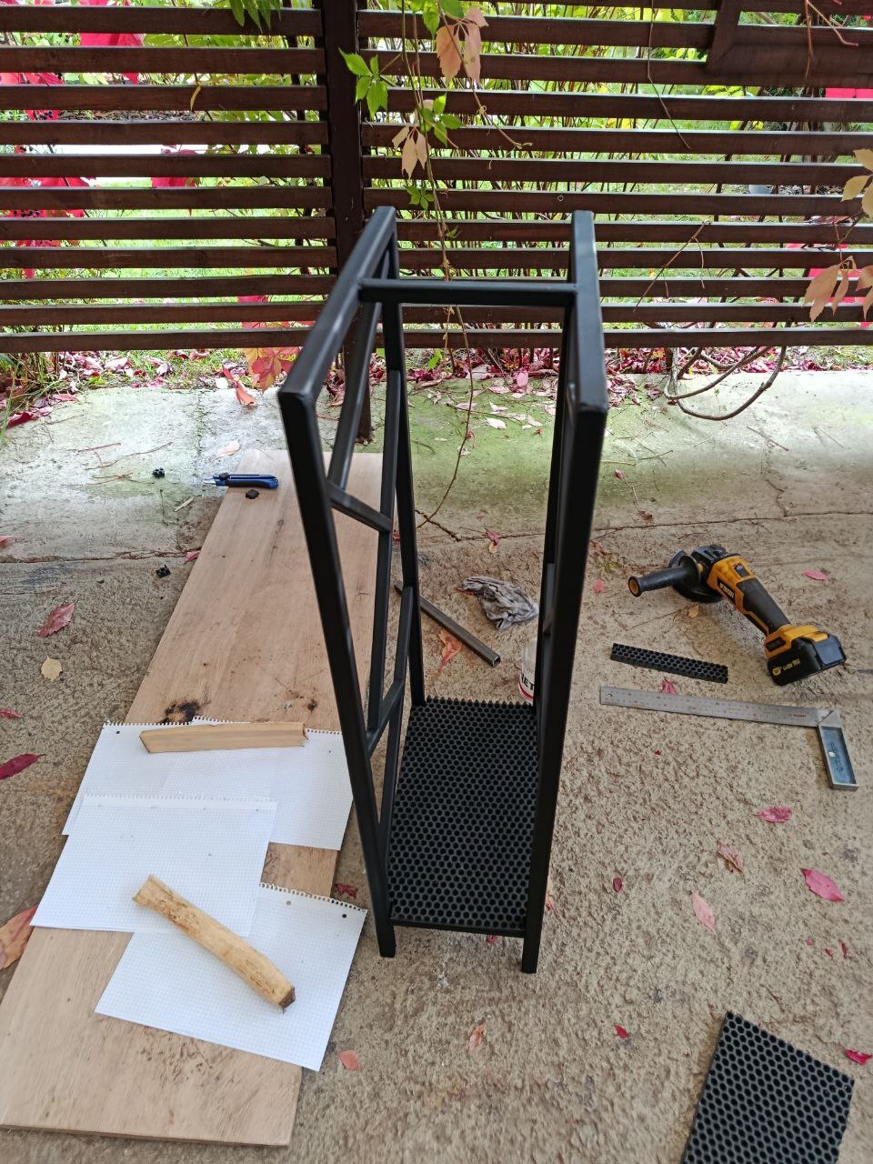 Если есть камин, то нужна дровница. Из остатков сварил такую штуковину.