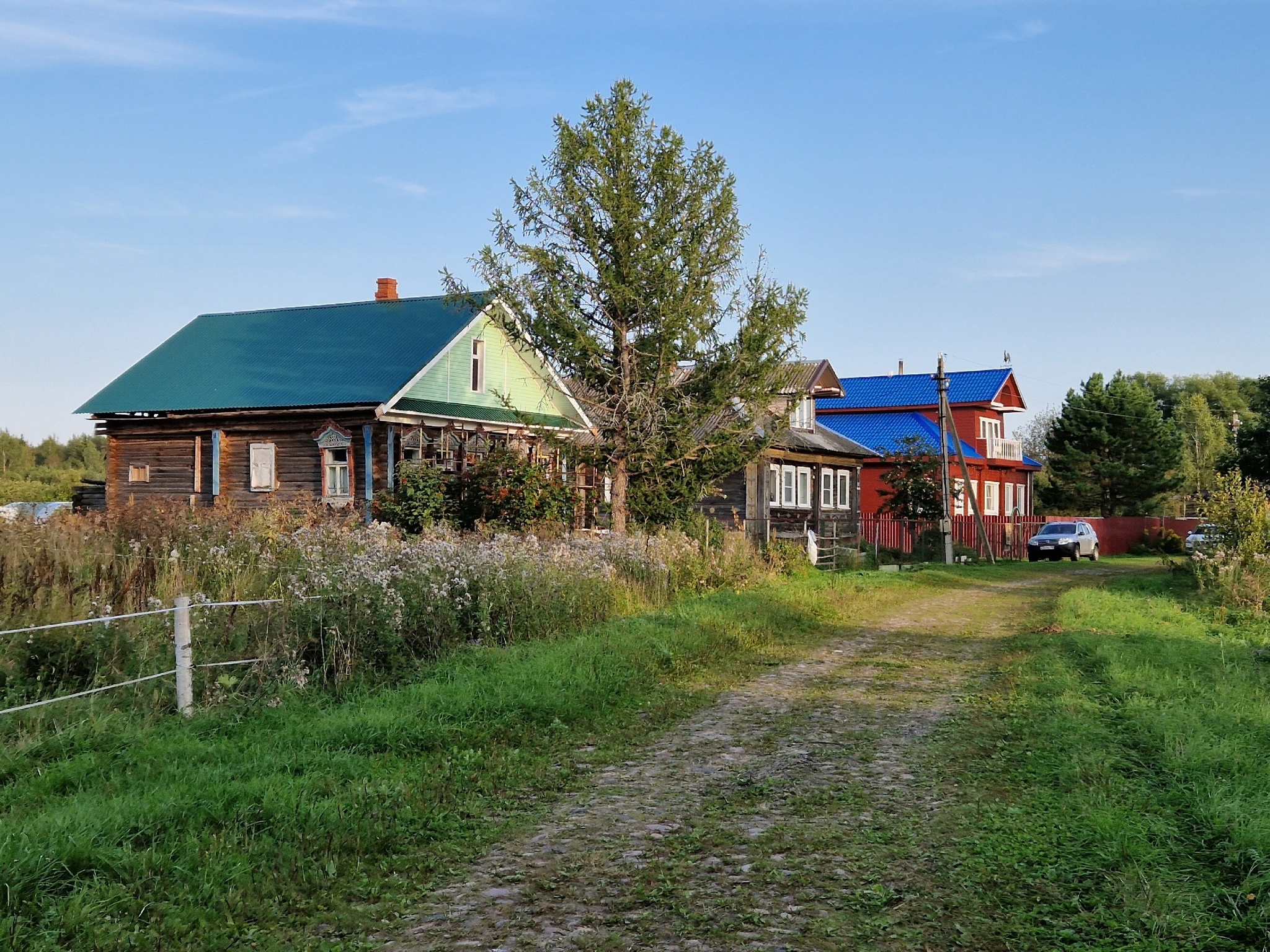 Но вот за деревней Черницыно современная дорога закончилась и снова перед нашими глазами была мощеная камнем дорога в идеальном состоянии. По ней, преодолев несколько километров, мы въехали в деревню Жабня.