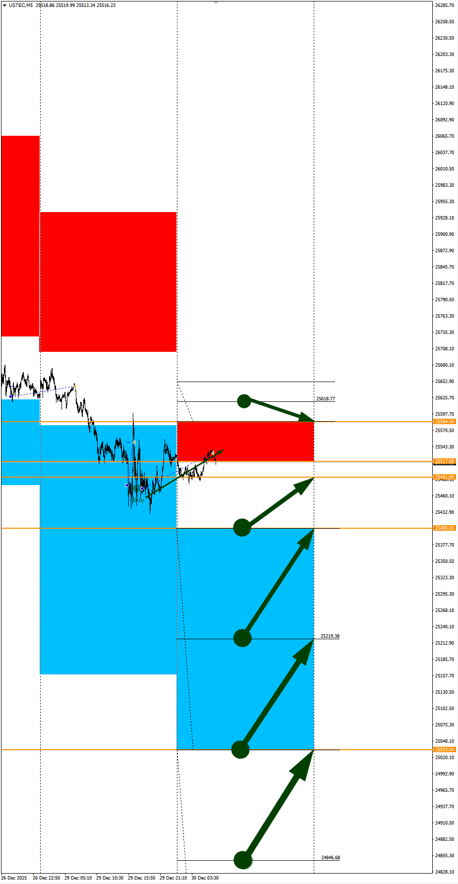 Зона покупок 25405,55-25033,00 с целью 25491,00. Покупки в приоритете пока фон доллара США слабый