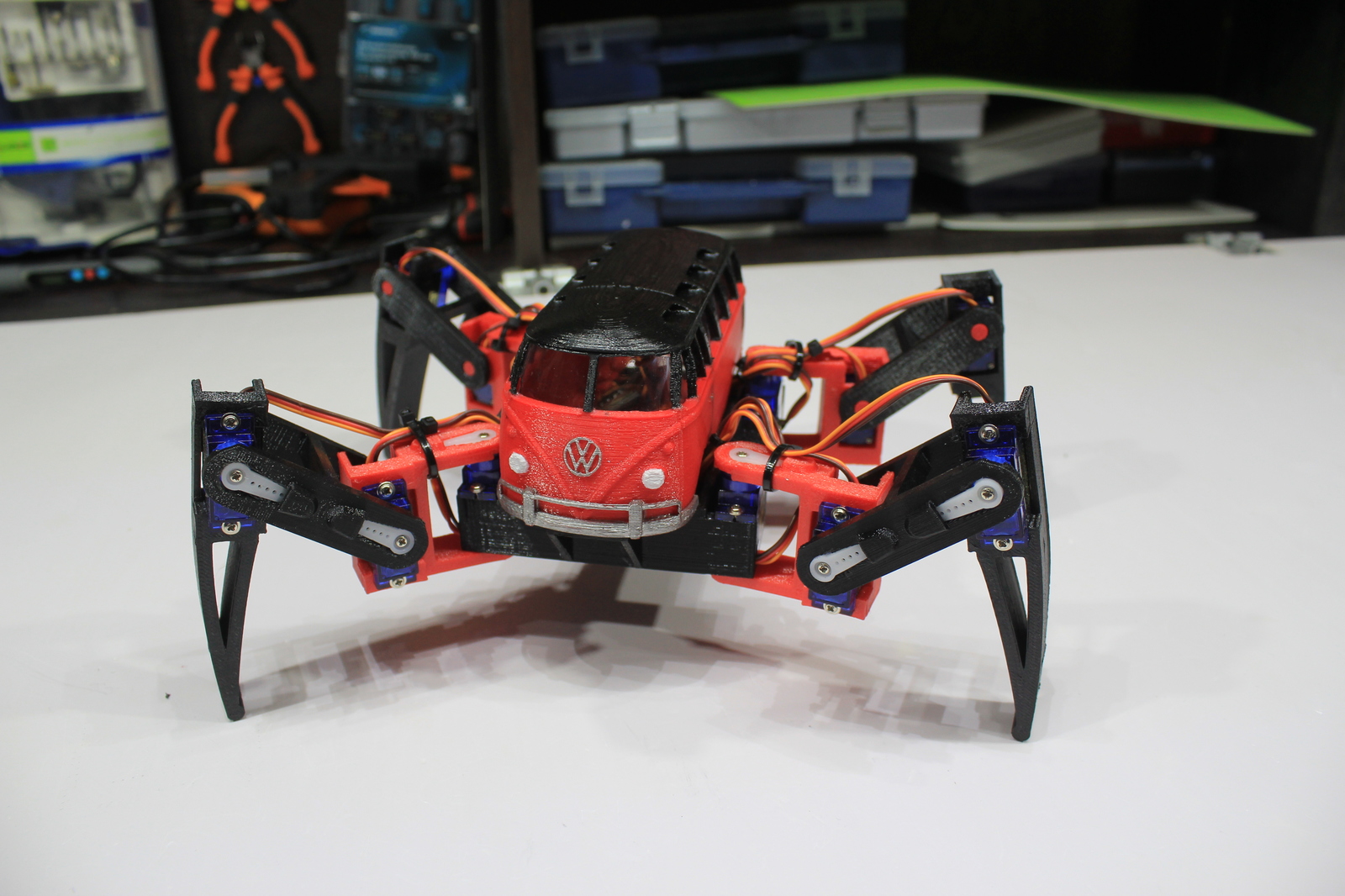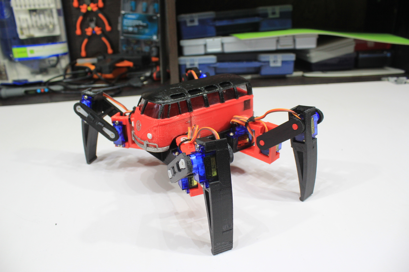 Очень забавная получилась игрушка, подвели только дешёвые сервы. Дохнут просто на ровном месте. Так что, лучше брать сервы подороже, хотя бы фирменные TowerPro. А ещё лучше брать сервы MG90, с металлическими редукторами (в идеале тоже оригинальные), под них есть готовый проект базы. С такими сервами робот проживёт гораздо дольше. Ну а на роль корпуса можно использовать, что угодно. Изначально, я хотел сделать шагающую Буханку, но, к сожалению, не нашёл хорошей модели.