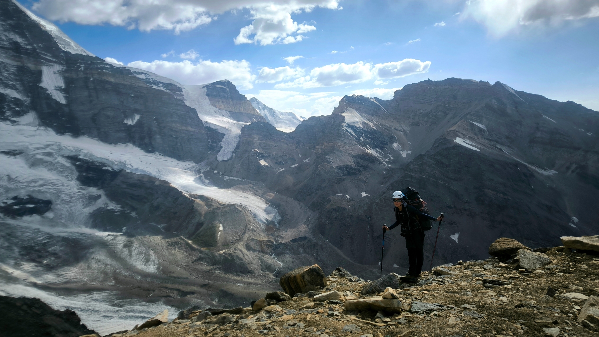 День начался очень забавно - первые несколько ходок мы с Ваней обсуждали Доту 2. Перед нами гарцевала Катя, притом она так уверенно перешла с зачехленной части ледника на открытую, при этом не надевая кошек, что я даже удивился.