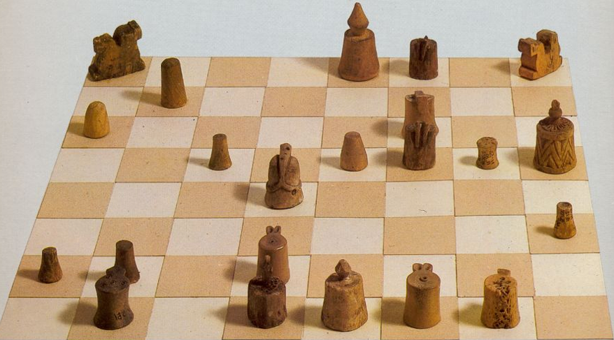В Древнем Новгороде были распространены настольные игры: шахматы, шашки, мельница, кости. В Новгороде, в культурных слоях Х-ХV веков, найдено более ста пятидесяти шахматных фигур. Раскопки свидетельствуют, что в конце XIII-XIV веке в шахматы играли почти в каждой новгородской городской усадьбе. В коллекции представлены все шахматные фигуры: короли, ферзи, ладьи, слоны, кони и пешки. Шахматные фигуры вырезались из дерева, кости и камня. Они геометрически-абстрактного типа, излюбленного в то время в Европе и на Востоке, значительно отличаются от современных. Меньше, вероятно, играли новгородцы в кости: костяных игральных кубиков найдено только восемнадцать.