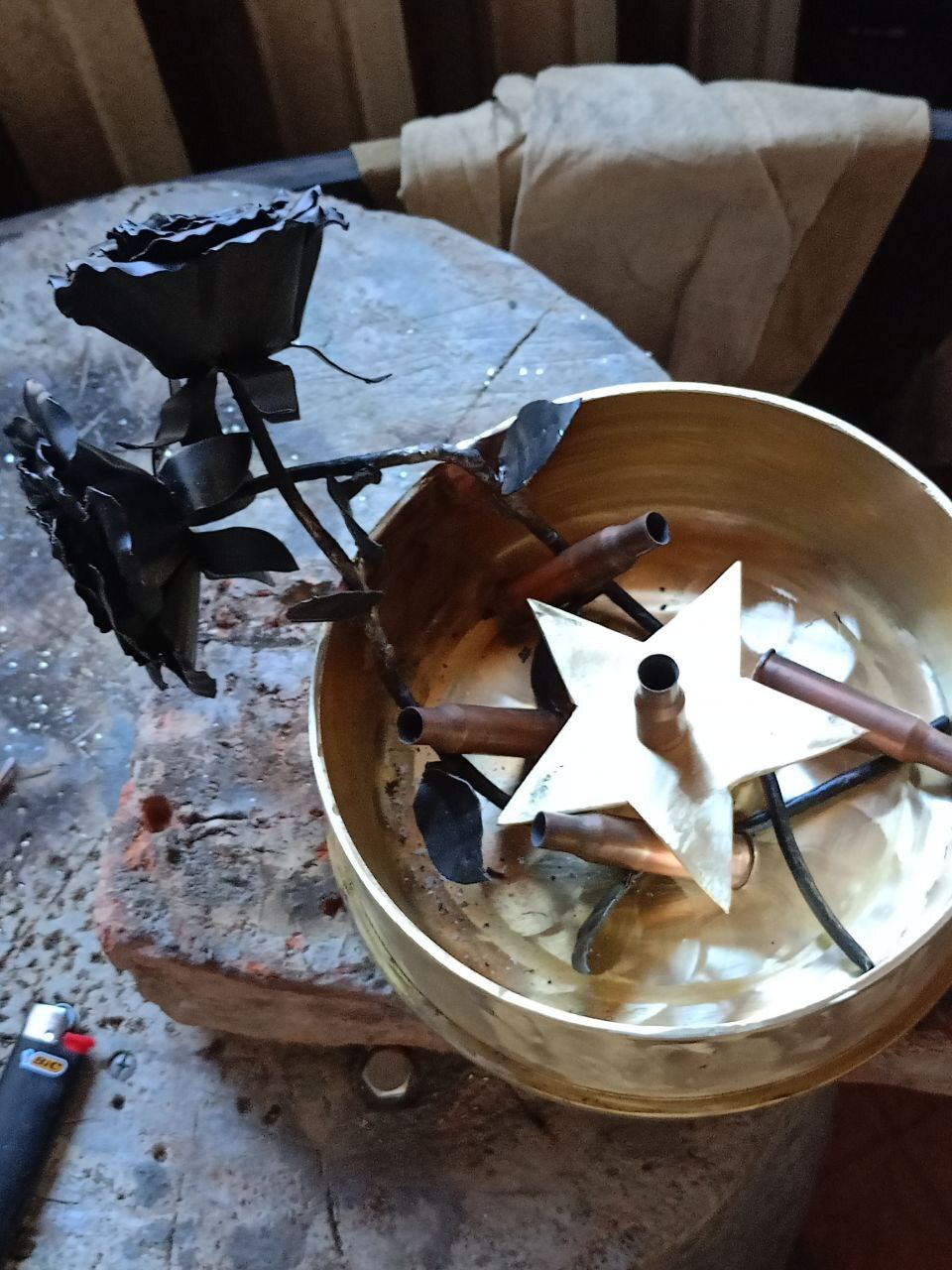 Как оказалось, талант к работе руками проявился у него неожиданно ярко. Используя обычные кухонные инструменты и подручные материалы вроде металлических гильз, он начал создавать удивительные вещи своими руками. От простых украшений до настоящих произведений искусства - каждая работа уникальна и наполнена смыслом.