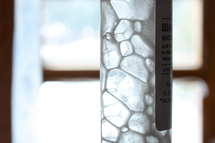 Высокий процент силиконов, как и масло, замутняет и разжижает шампунь. Водорастворимые силиконы легко встраиваются в шампунь и не накапливаются на волосах, так как смываются водой. Обычно это какой-нибудь силикон сополиол, например, Dimethicone Copolyol, или ПЭГ-силикон (ПЭГ-7 амодиметикон, к примеру).