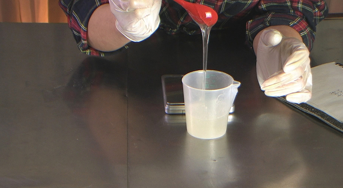 4) В отдельный стакан отмерим кокамидопропил бетаин. Ввожу порциями, наблюдая за изменением густоты. Если в какой-то момент шампунь становится сложно промешать, то КАПБ уже явно достаточно и можно остановиться. Когда делаете шампунь по проверенному рецепту, можно бахнуть сразу весь КАПБ. У меня ушел весь КАПБ, густота получилась приличная.