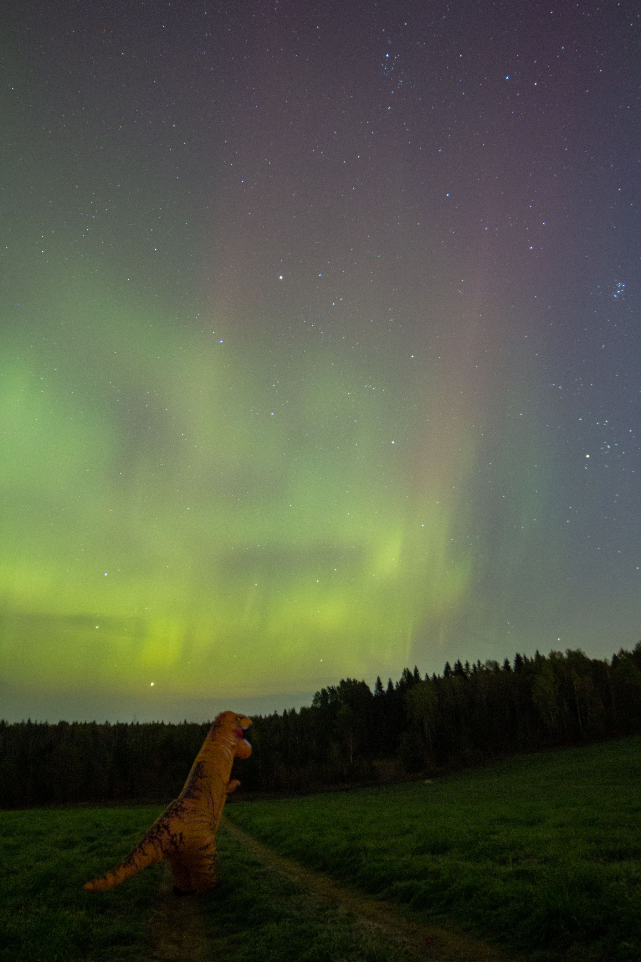 Шанс встретить динозавра в поле во время северного сияния очень мал...