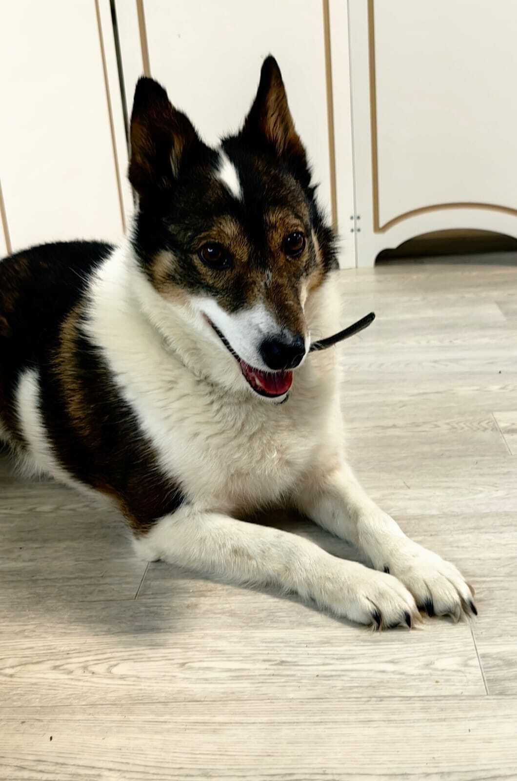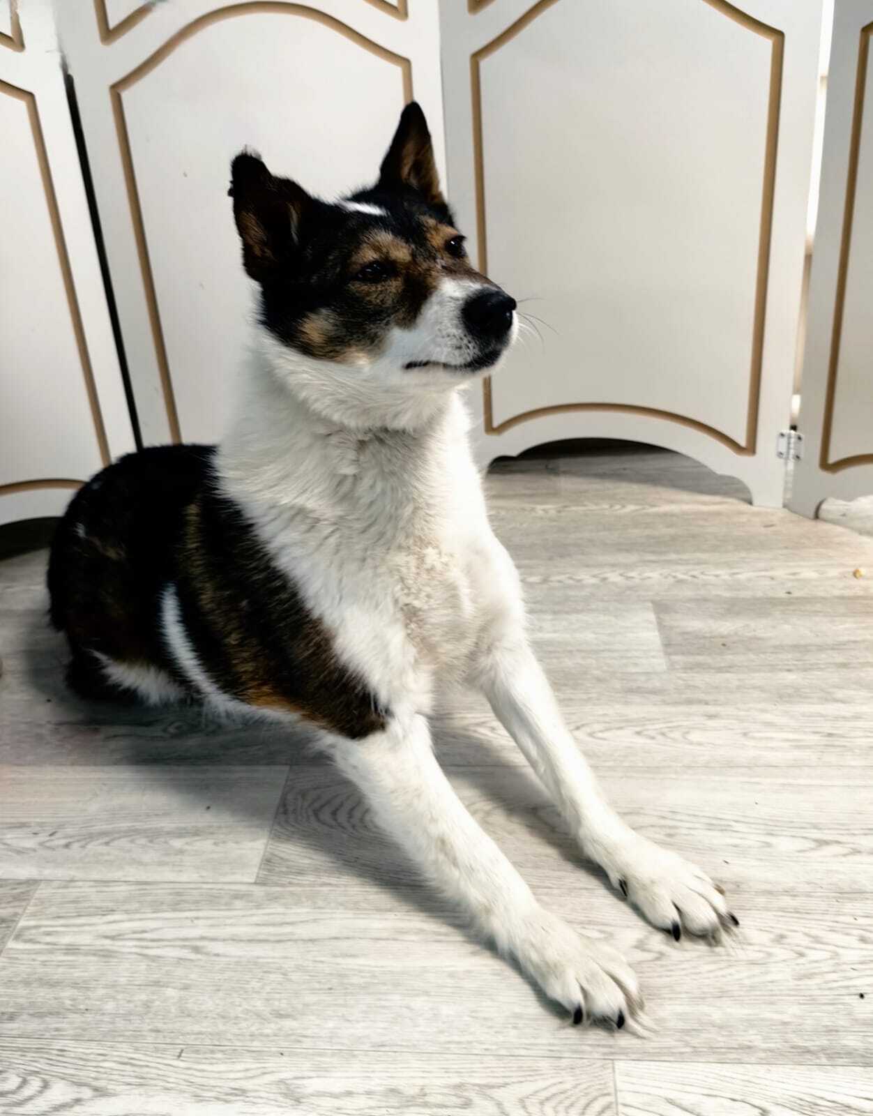 Шарлотта — собачка с трудной судьбой, поэтому осторожно относится к незнакомым людям.
