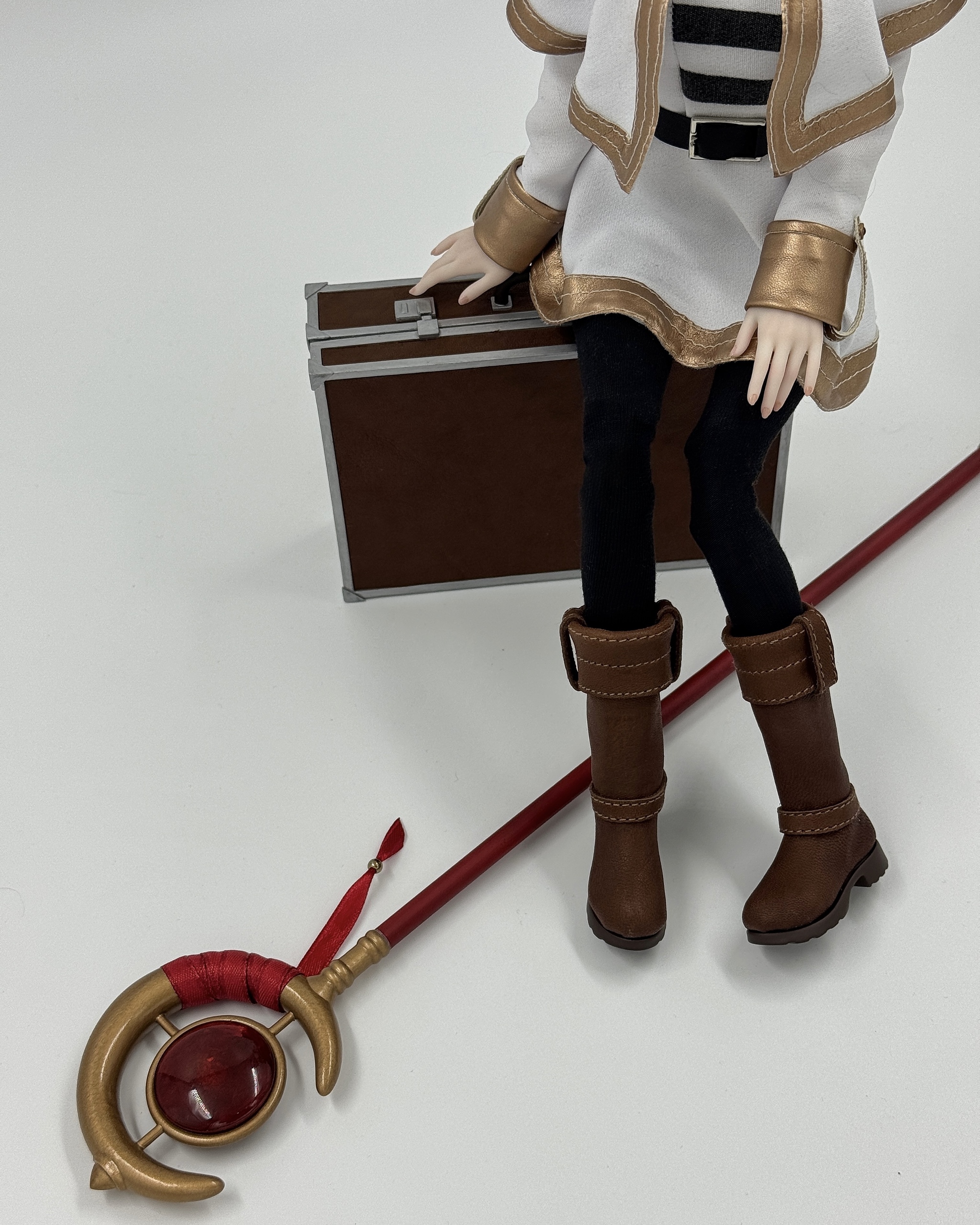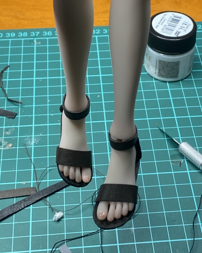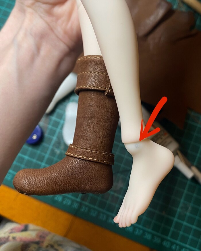 Я еще очень переживала за то, что застежка на сапогах будет выглядеть нелепо и громоздко, но сапоги у персонажа широкие, так что нога влезла и так, что меня очень обрадовало. На фото еще виден штифт в стопе, о котором я говорила выше.