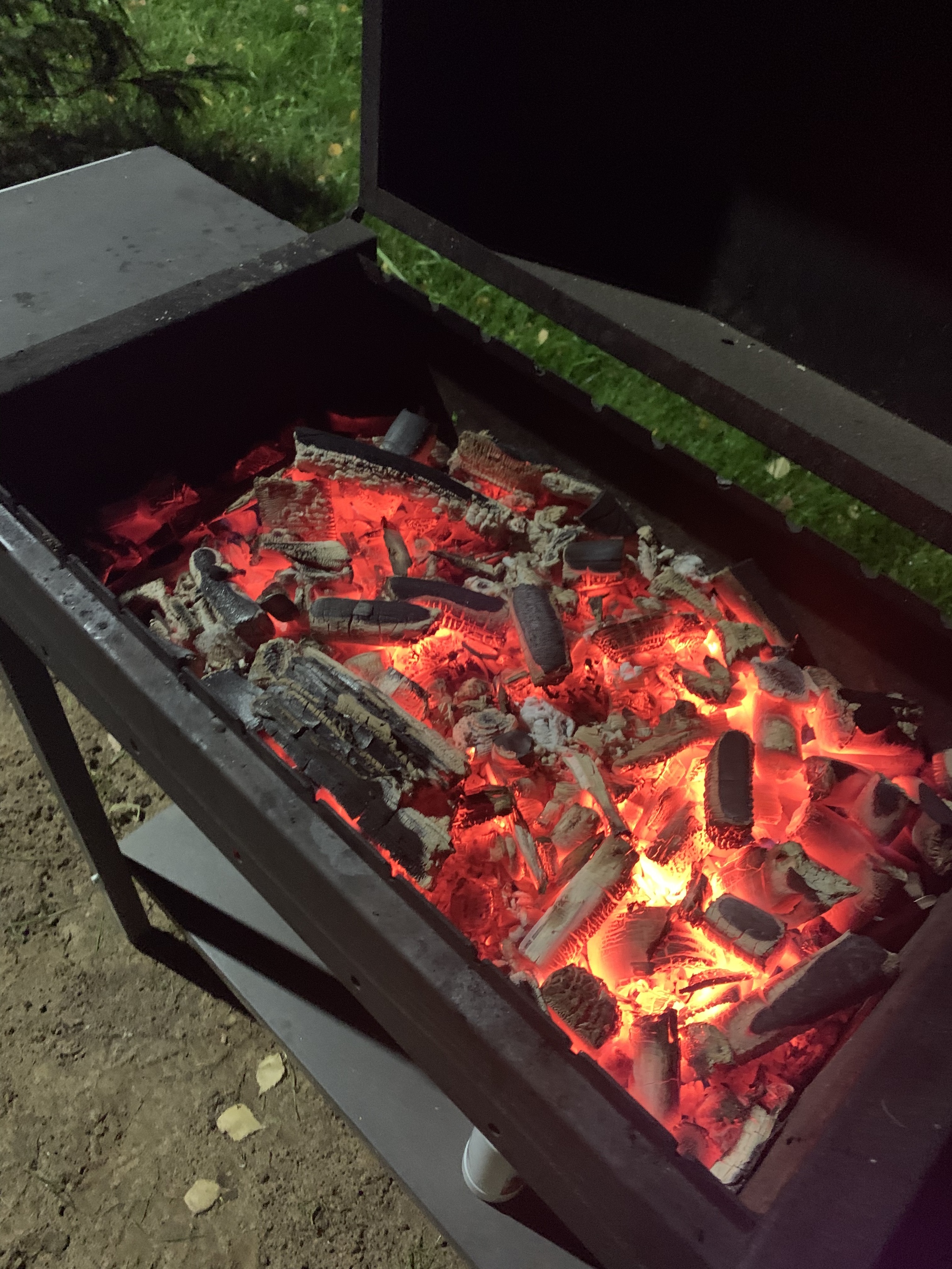 За час до приёма пищи подготавливаем Мангал. Как именно - решать Вам, лично я беру готовые Березовые угли и разжигаю их, пока они не приобретут такой цвет: