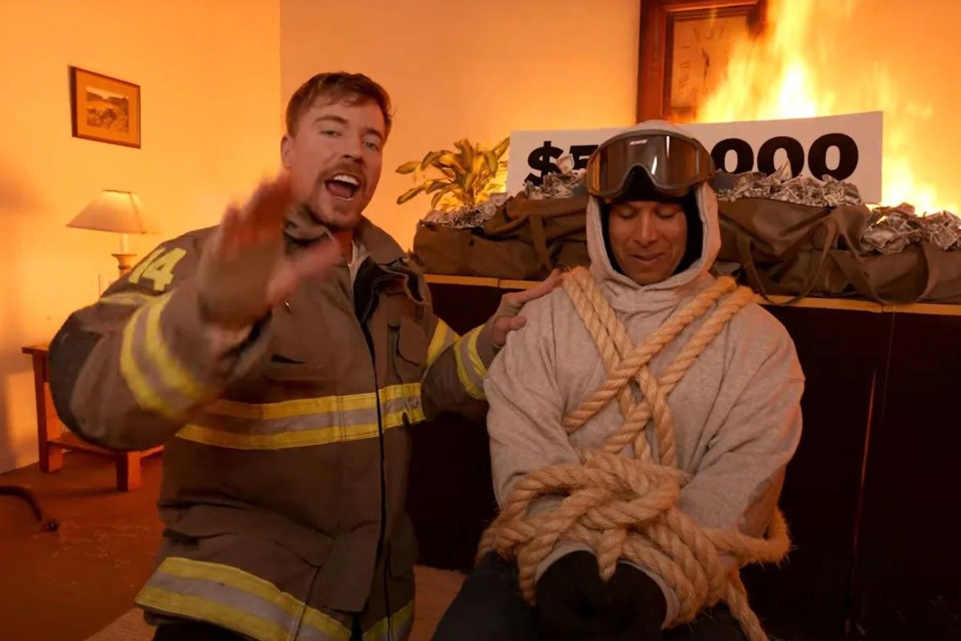 В последнем видосе мистер Бист предлагает каскадеру попробовать выбраться из горящего дома, чтобы выиграть полмиллиона баксов. Кстати, вы смотрели хотя бы один его ролик?