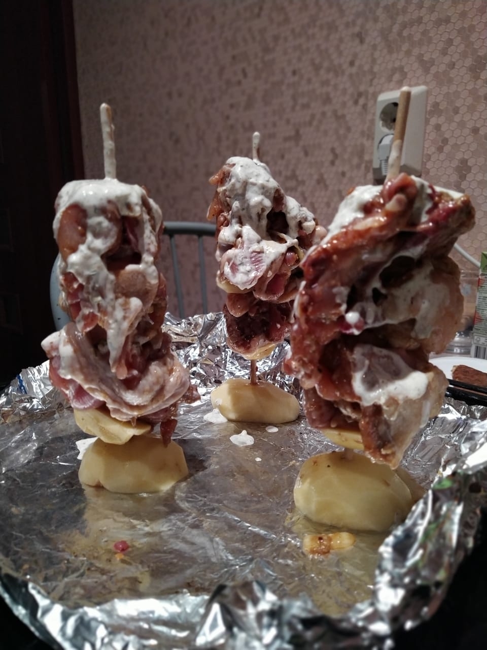 Соус: кефир, сметана, чеснок, сушенная зелень петрушка и укроп