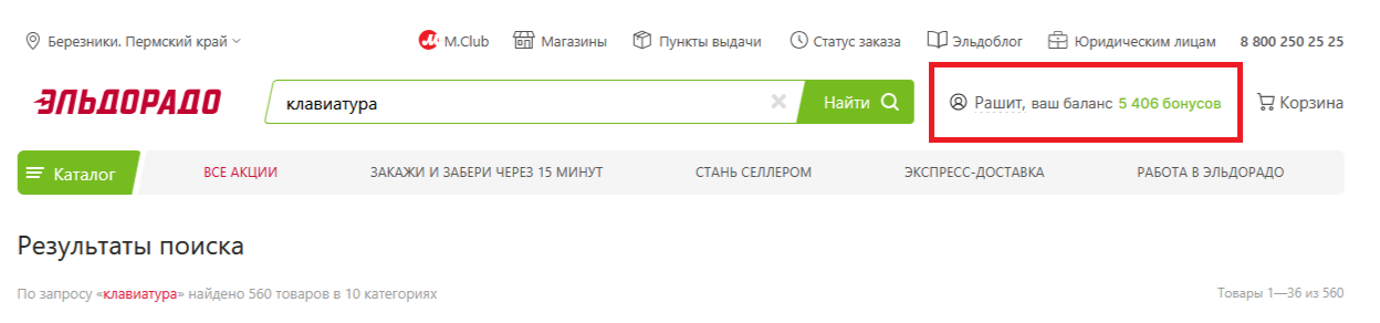 промокоды для Эльдорадо