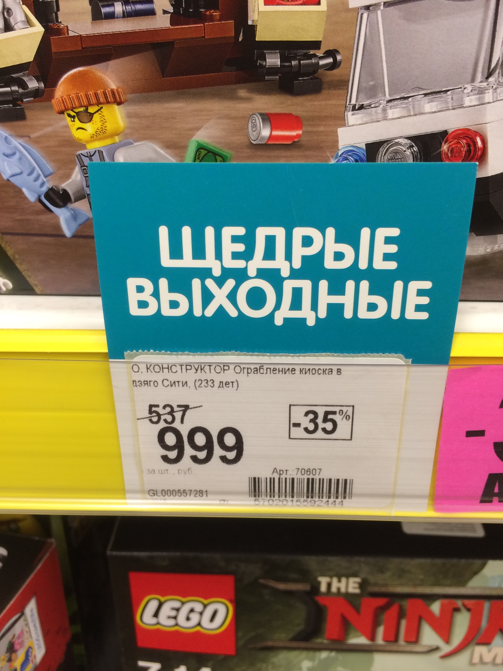 Quiksilveresa Щ- щедрость 7 лет назад В одном из детских магазинов очень щедрые менеджеры. Надо брать. [моё] LEGO Щедрость Fail Ошибка Обман