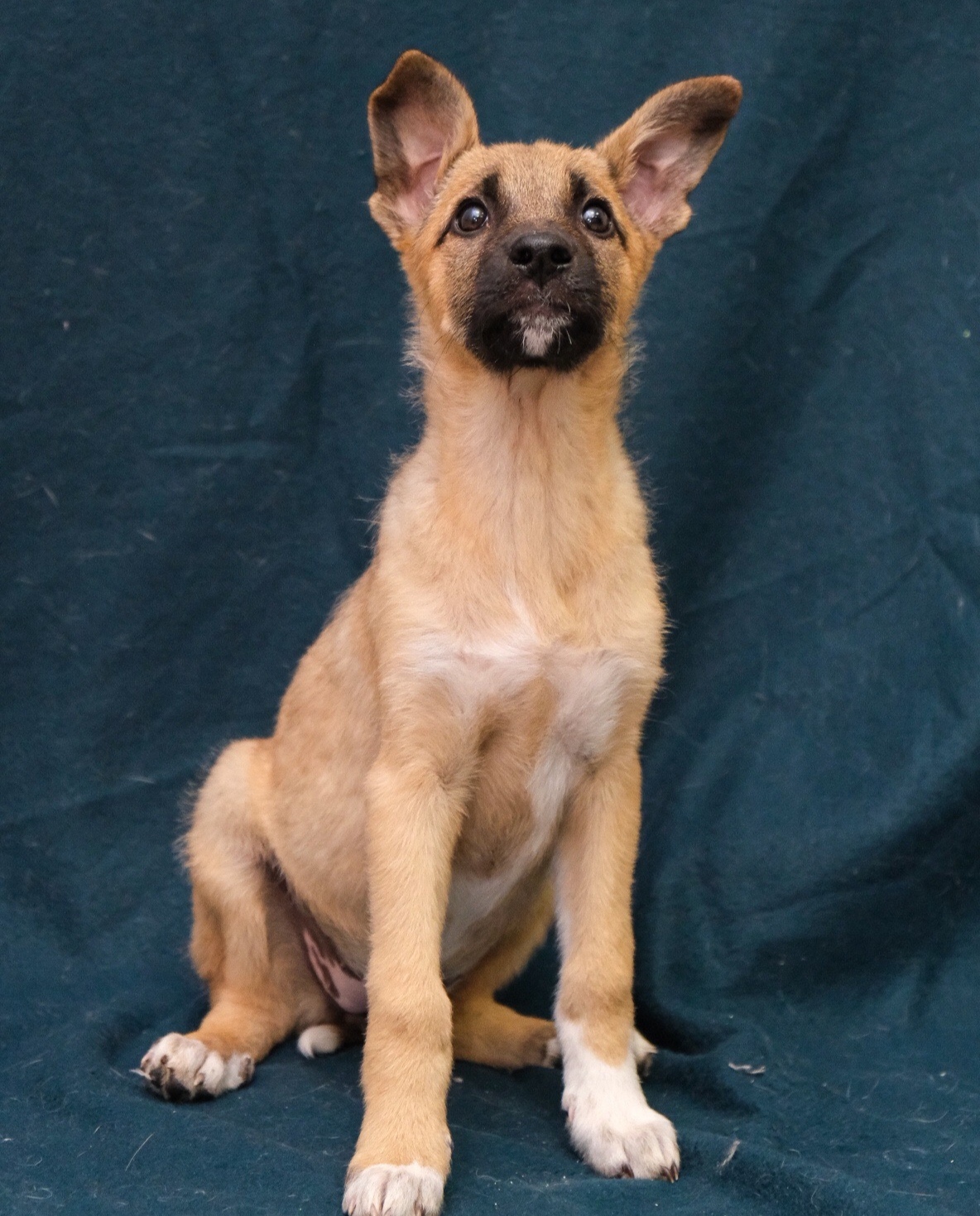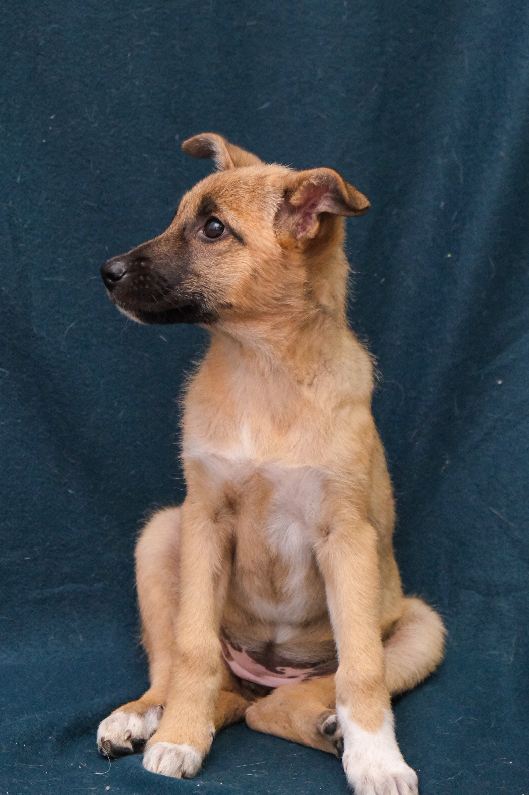 Апельсину 2,5 месяца. Здоровый шебутной ребенок. Обработан и готовится к прививке. Вырастет некрупным, меньше среднего. Максимум - по колено, а то и ниже.