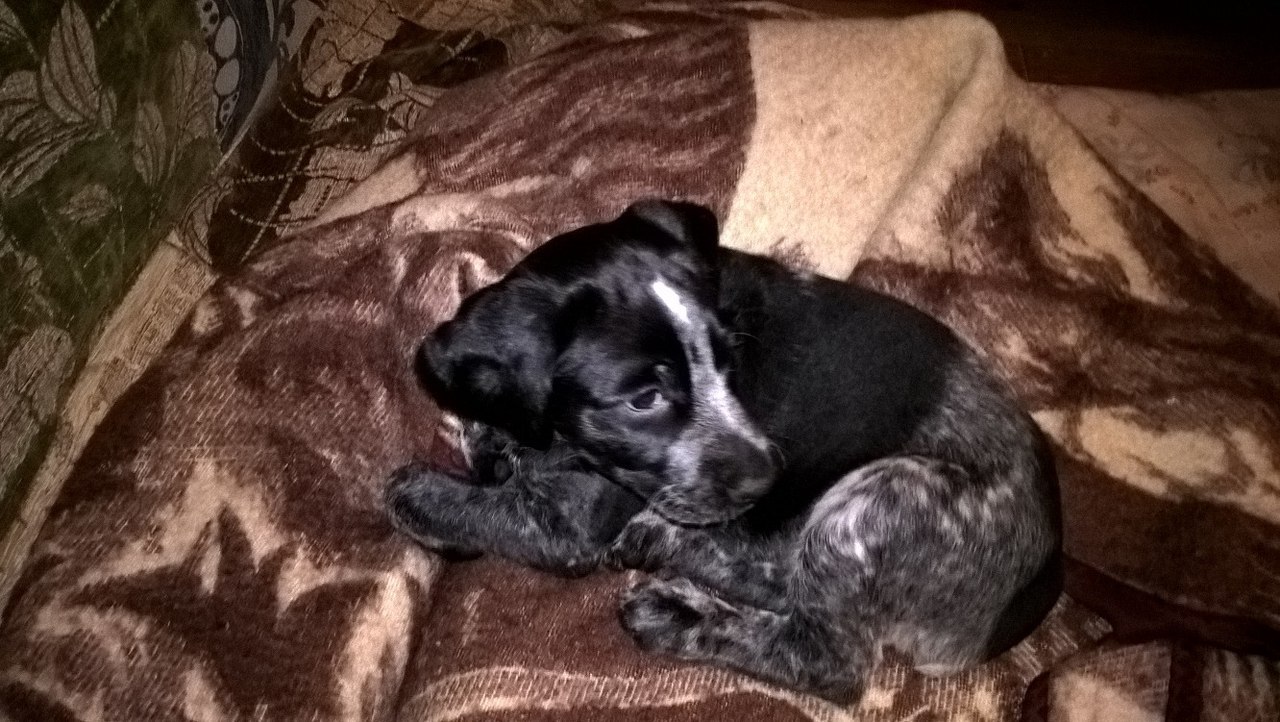 Добрый день, друже! Возможно именно ты сегодня увидишь своего лучшего боевого друга, а точнее подругу в этом милом щенке. Дитя любви, мама - дратхаар (на фото), папа - лайка (фото не оставил), добрая, задорная и нюхастая девочка ищет хозяина и друга на всю жизнь. Два месяца от роду, ест всё, от собачьего корма до сушеных груш, мясо чует за 10 метров в плотном пакете, легко обучается охоте на почти любого зверя. По повадкам и конституции чистый драт, борода вырастет со временем.