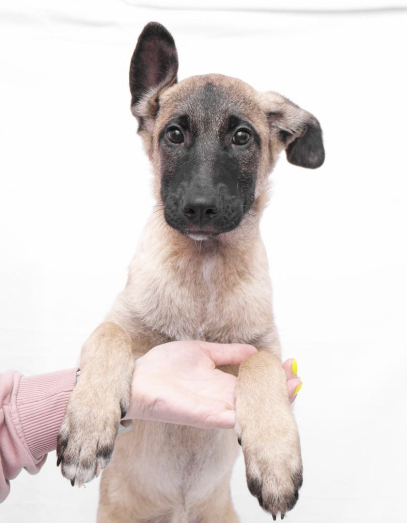 Финик осмотрен врачом, здоровый, чистый ребенок, обработан, уже есть первая прививка и паспорт. Возраст 3,5 месяца, уже ходит на поводке и старается терпеть туалетные дела иначе доносит на пеленку. Финик вырастет средним примерно по колено, около 22кг. По характеру очень контактный, ласковый и ручной.
