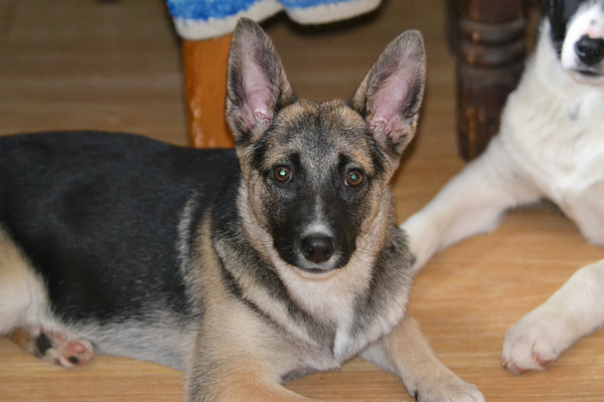 Вырастет средней по размеру, скорее всего ниже колена и весом до 20 кг. Ушки уже встали.
