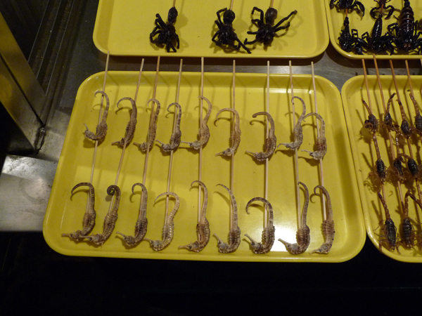 в Пекине есть рыночек где продают всякую экзотическую еду, вот местные туда обычно ходят, чтобы посмотреть как туристы это все едят, всяких скорпионов на палочке и прочую редкую ерунду.