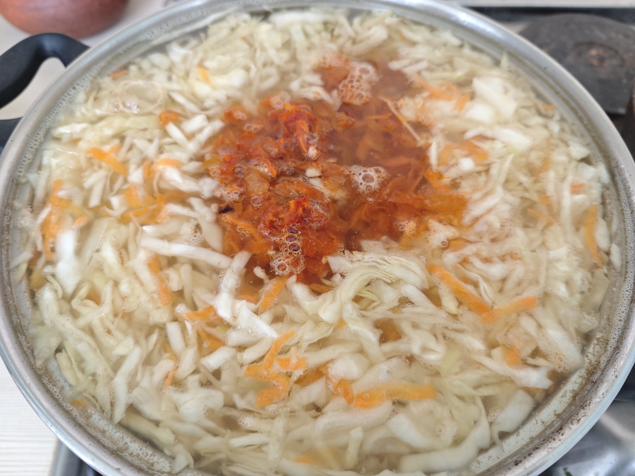 8. Добавляем зажарку и еще на 5 минут оставляем кипеть на малюсеньком огне.