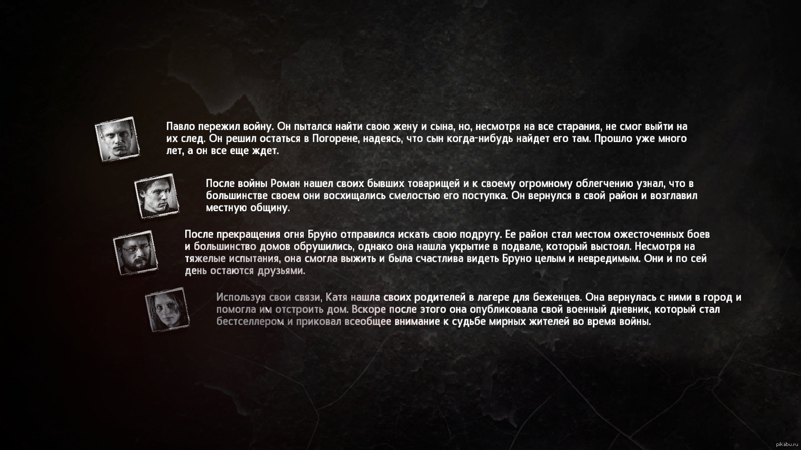 0 Tilman Шедевральная игра. Простите за возможный спойлер :/ 10 лет назад С пятого раза выжил. Давненько не было столь интересных игр. Если пройти снова, но по-другому, то судьбы героев изменятся? [моё] This War of Mine Игры