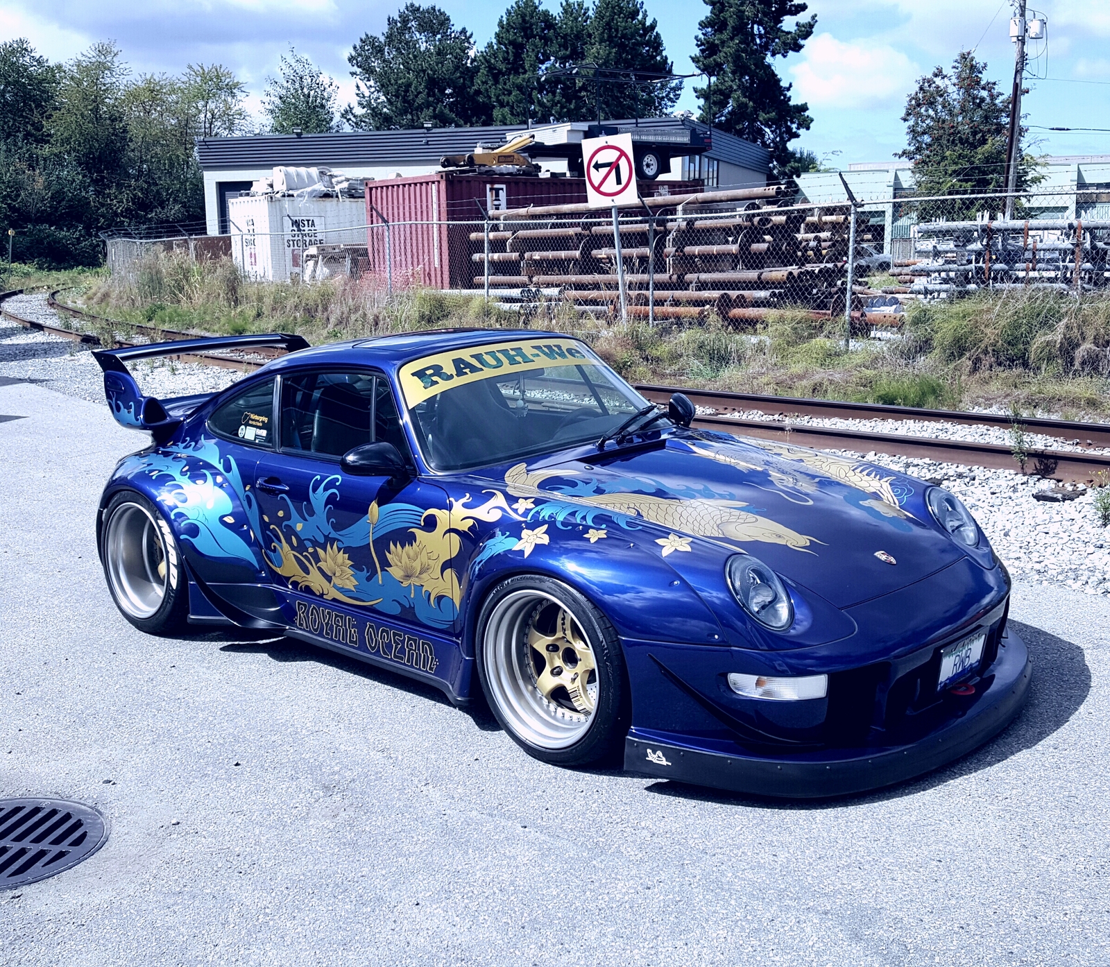 Как опять таки я писал в прошлом посте, коллекция Питера интересна тем, что в ее составе нет какой-то единой линии, за исключением, наверное, только того, что эти машины все нравятся их хозяину и он их явно любит. Данное авто — самый что ни на есть лучший показатель красоты объединения полубезумного японского тюнинга с немецкими шедеврами ушедших лет. Это — Porsche 911 в прекрасном кузове модели 993, над которым изрядно поработал знаменитый японский тюнер Акира Накай под именем Royal Ocean: