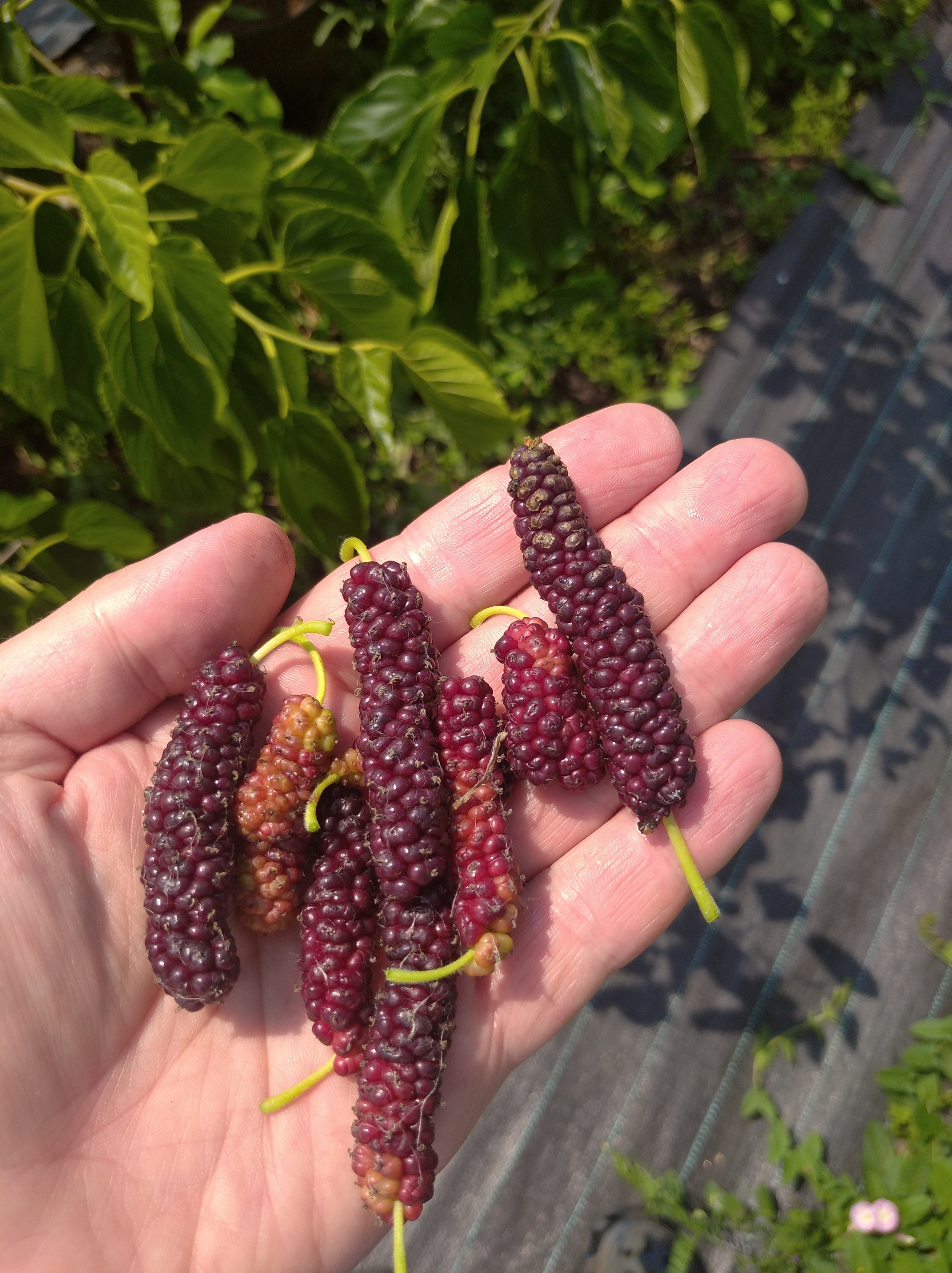 А я занимаюсь наблюдением и селекцией шелковиц у себя на опытном участке в Челябинске. В этом году высадил около полусотни гибридных сеянцев Morus macroura (пакистанской шелковицы) с Morus alba. Надеюсь, что хотя бы какая-то часть потомства унаследует зимостойкость от отцовского вида и размер плодов от материнского.