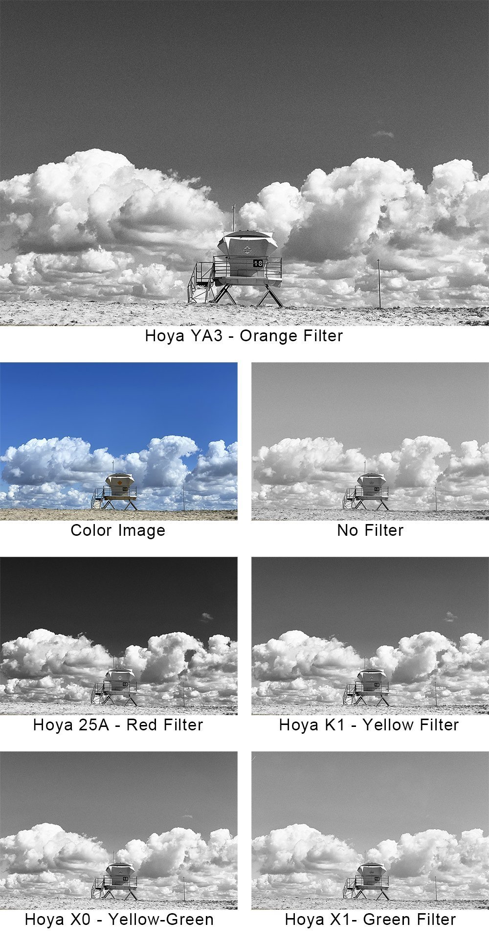 тут, конечно, много вкусовщины в том, какая тонопередача вам больше всего нравится, как автору, но, в принципе, тональностью можно управлять в довольно широких пределах, делая небо даже почти чёрным (темно-красный или ИК-фильтр) или совсем белым (синий). Точнее эффект можно предсказать, сравнив графики пропускания цветов фильтра и цветочувствительности плёнки. На мой взгляд, главное, что дают почти все фильтры - это избавление от ультрафиолета, который уже на высоте в тысячу-полторы начинает съедать контраст, хотя глазом он не видим.