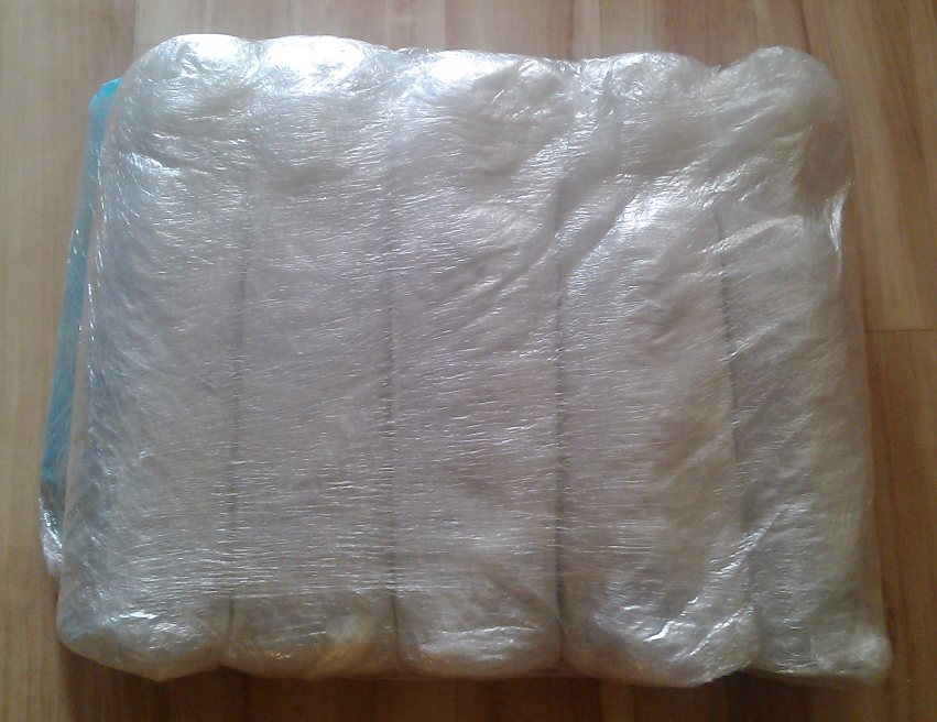 Замотали каждую в пупырчатую плёнку и потом связали вместе стрейч плёнкой