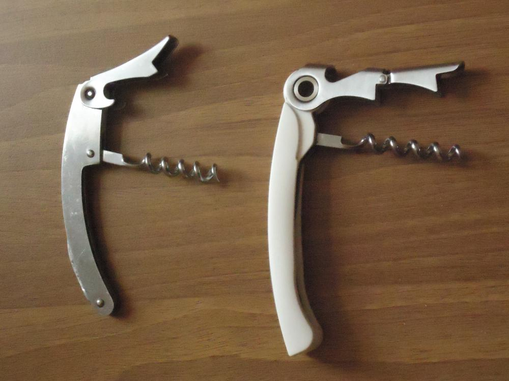 Избежать этой проблемы позволяет двухступенчатый нож сомелье, имеющий не один, а два упора. Когда свободный ход рычага выбран до предела, просто смените упор, - и такой проблемы не возникнет. Стоимость двухступенчатого ножа сомелье начинается где-то от 400 руб. для «рабочих лошадок» из стали и пластмассы и может оказаться заметно выше в случае «дорогой» подарочной отделки с рукоятью из полированного дерева и прочими архитектурными излишествами.