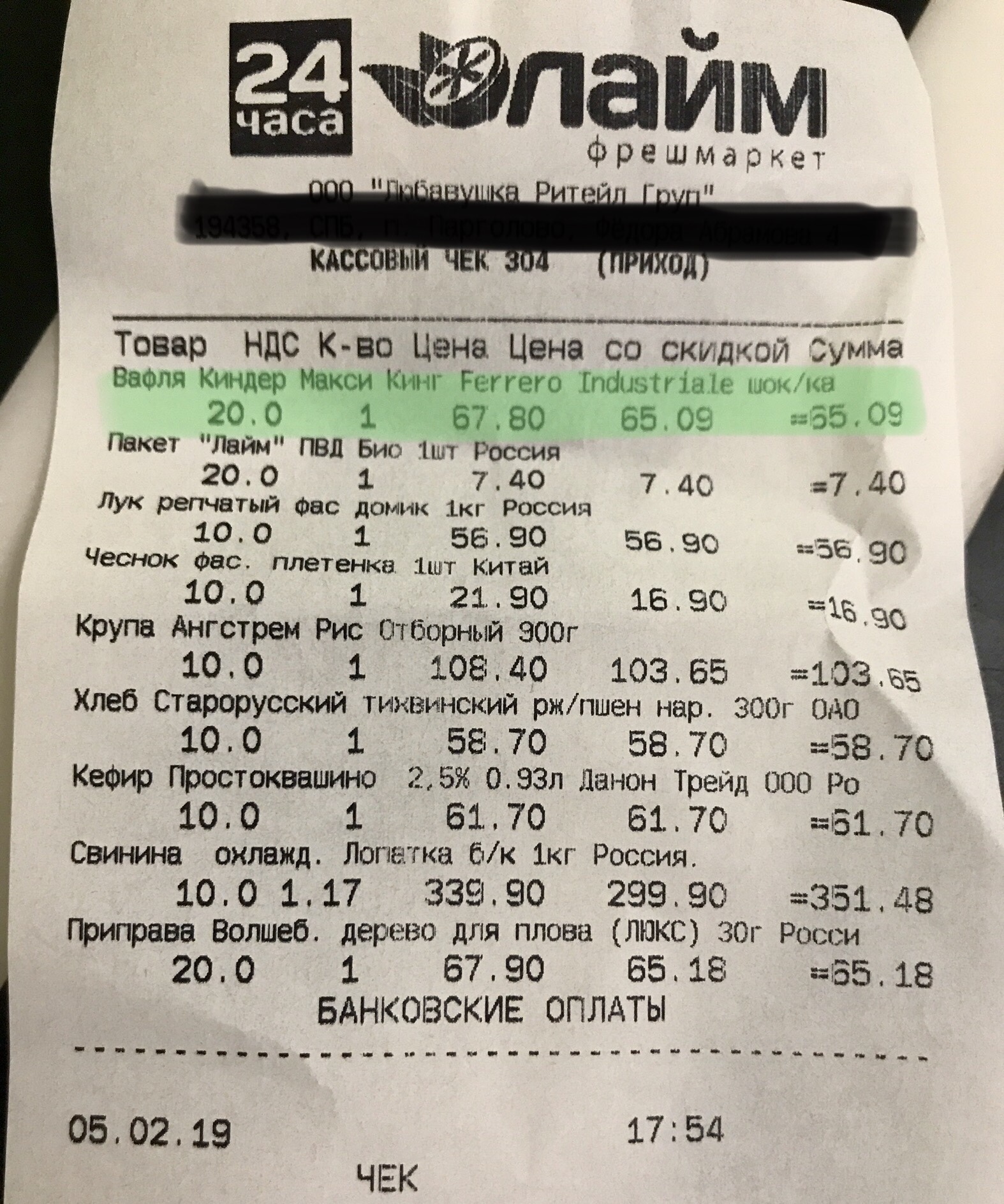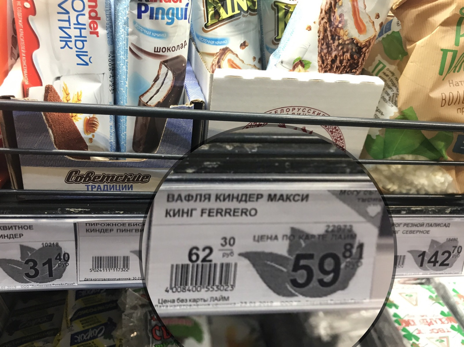 Вчера никого не трогал и спокойно делал покупки в магазине Лайм (вместе с магазинами 7Я и Идея входит в холдинг Интерторга). Когда дело дошло до кассы и сканер пробил пирожное Kinder maxi king почти по 68 рублей - сильно удивился, потому как был уверен, что видел ценник прилично ниже. Время было позднее, очередь большая и я забил.