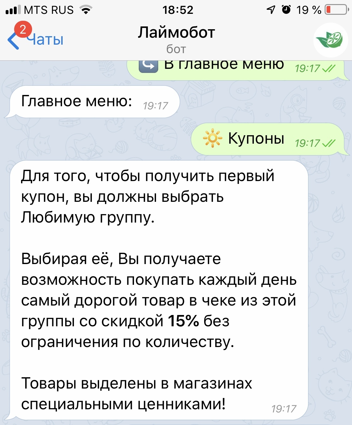 Я уже большой мальчик и все понимаю, но ведь, это купоны из телеграмм бота! Которые ещё нужно активировать по конкретной категории! Из всех категорий товаров можно активировать купон только на одну, по выбору. Срок активации к 8 утра следующего дня. Как вы думаете, какой процент покупателей Лайма регулярно пользуется этими купонами? В итоге ребята, на ровном месте, нашли как увеличить маржинальность и еще упаковали это в программу лояльности - браво.