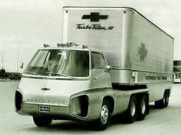 Начало 60х было периодом оптимизма и уникальных инженерных проектов в области автомобилестроения. Конкурирующие электростанции были заняты гонкой мощностей, бензин оставался дешевым, а автомобилестроители были освобождены от правительственных норм. В 1966 г. Chevrolet представил Turbo Titan III - ходовой прототип, сочетающий прогрессивный дизайн с техническими инновациями. А основной особенностью концепт-трака стал, конечно же, газотурбинный двигатель 5го поколения. Turbo-Titan III построили на стандартном шасси, а 12-метровый полуприцеп из нержавеющей стали изготовили специально. Общая длина автопоезда достигла 15 м при полной массе 35 т.