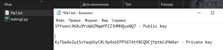 Протестируем наш скрипт) для этого в папке со скриптом создам файл file1.txt c ключами bitcoin.