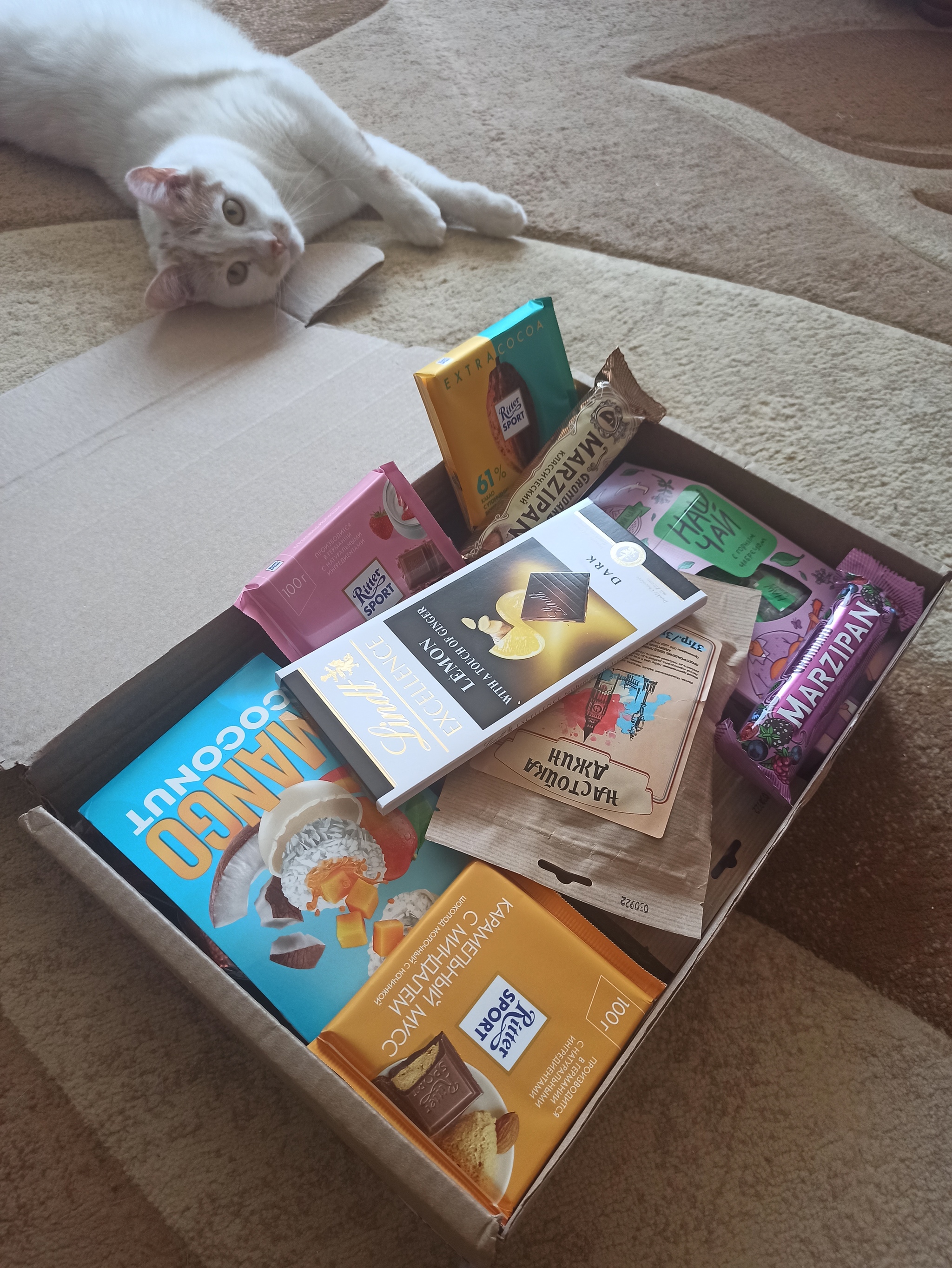 А внутри много вкусных шоколадок, конфеты, наборы трав для настоек (уже засыпал в самогонку), крымский чай, книга (фантастику прям люблю), магнит, вкусняхи для зверей, рукавица и сетка для гриля и вкуснючий домашний айвар с копченой паприкой (вещь!!! пробовал первый раз).