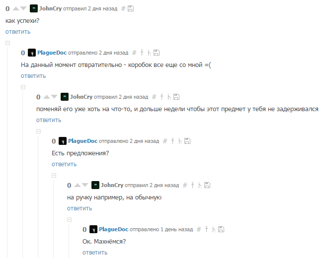 Долгие-долгие 30 с лишним дней я ни с кем так и не мог поменяться этим коробком, людям на улице было не интересно - меня обходили как человека со странностями, авито мое объявление успешно заблокировало, и энтузиазм постепенно пропадал. Хотел уже извиниться перед подписчиками, что продолжение эксперимента все никак не идет, как тут...