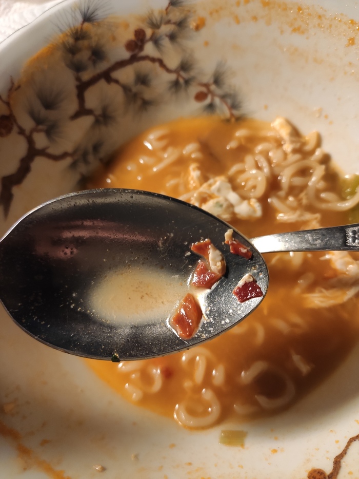 Но несмотря на это я все ещё думаю, что воды было многовато, потому что в самом бульоне почти ничего не осталось, кроме остроты и лёгкой сладости, которую сразу ощутить не получится. Потому что первые "укусы" немного отбивают какое-либо восприятие вкуса.